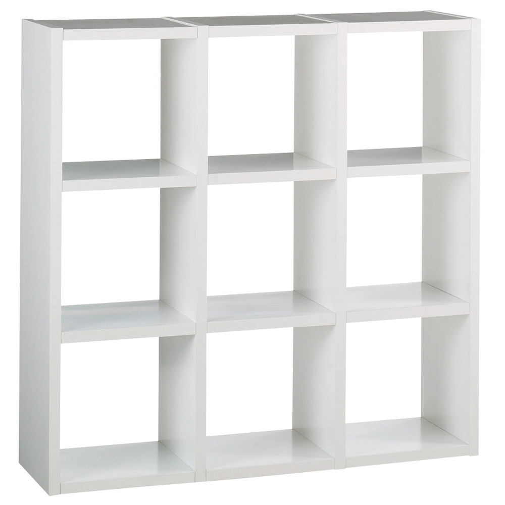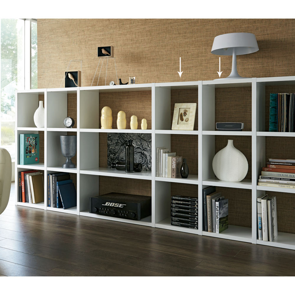 ホワイト。矢印部分の縦1列分を横に連結することで、お部屋のスペースに合わせたシェルフに拡張することができます。