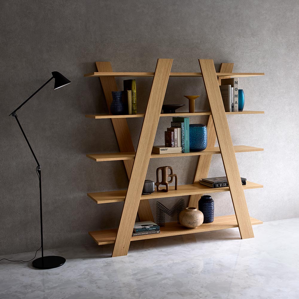 飾り棚や本棚に。アーティスティックなルックスと天然木の風合いは置くだけでリビングの顔になる、存在感のあるリビングシェルフです。インテリアに風を吹き込むデザインWINDYリビングシェルフは、その斜めのラインがまるで風が吹き抜けたかのような動きを感じさせる印象的なデザインです。シンプルながらも個性的なその形状は、どんなインテリアにも融合し、居心地のよい空間を演出します。モダンな部屋やシンプルなインテリアにはとてもよくマッチし、自宅のインテリアが一段と格上げされます。天然木仕上げの上品な質感ナチュラル系のオーク、シックなウォルナットから、ライフスタイルやインテリアに合わせて選べます。色合いや木目など、一つひとつが唯一無二の魅力を持った天然木ならではの風合いで、同じデザインでも全く異なる表情を見せてくれるのが特徴です。WINDYリビングシェルフは、空間をより個性的に、そして温かみのあるものにすることでしょう。持続可能な資源から生まれる高品質な素材WINDYリビングシェルフは、リサイクル素材を含んだパーチクルボードやFSC認証の天然木突板など、持続可能な資源から得られた高品質な素材を使用しています。環境保護に貢献しながら、スタイリッシュで個性的なインテリアを楽しむことができます。【TEMAHOME】テマホームTEMAHOME(テマホーム)は、ポルトガル最大の輸出量を誇る家具メーカー。世界40ヶ国1300以上の店舗に商品を供給しています。「使う人の思い思いのライフスタイルを実現してほしい」という願いを込めた「Living your Dreams」というスローガンのもと、自社デザイナー、そして外部の著名デザイナーと開発したプロダクトを次々と発表。ケルン(ドイツ)、ミラノ(イタリア)、ラスベガスとハイ・ポイント(アメリカ)の世界4大家具展示会にて新作を発表しています。シンプルながら、ヨーロッパの香りあふれる「日常のモダン」を感じられる家具として、世界中にファンを増やし続けています。