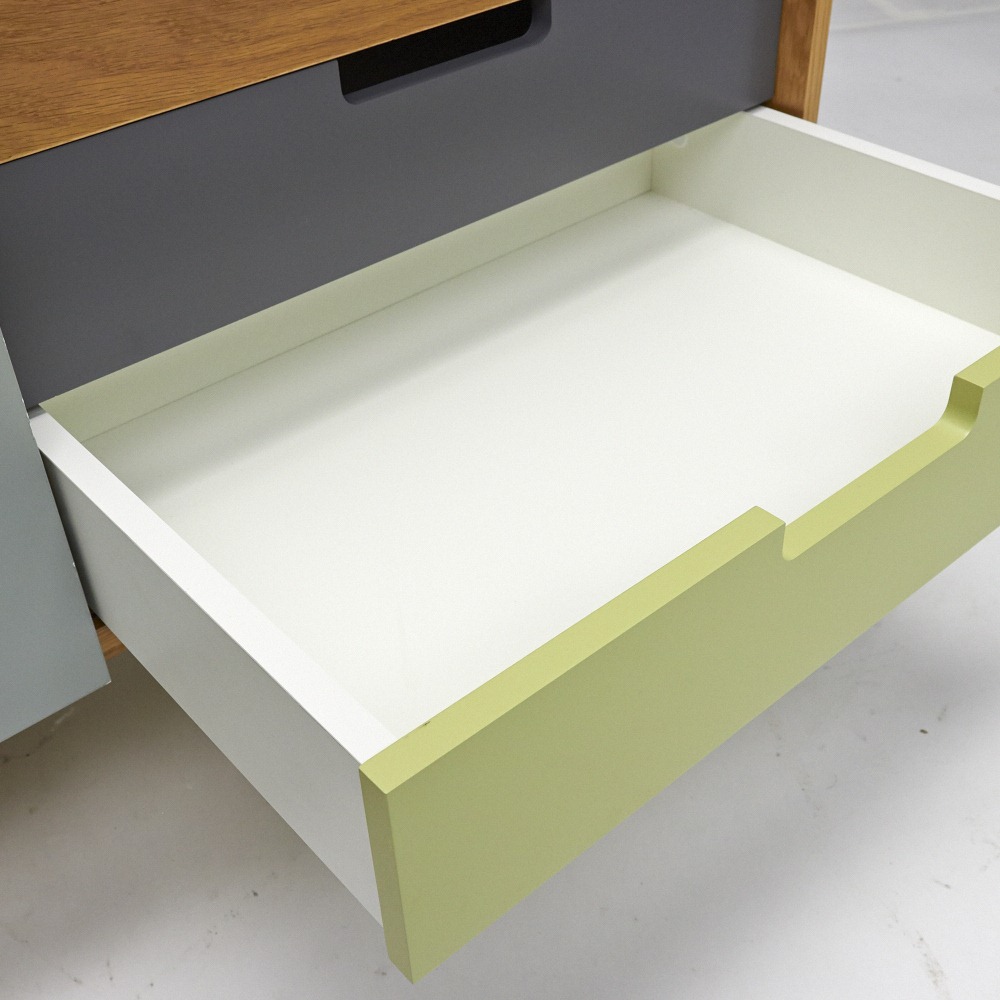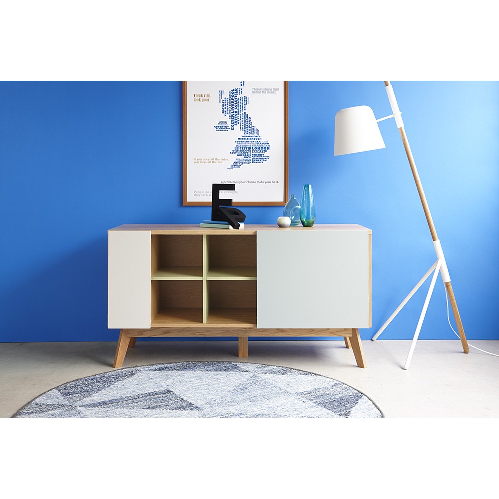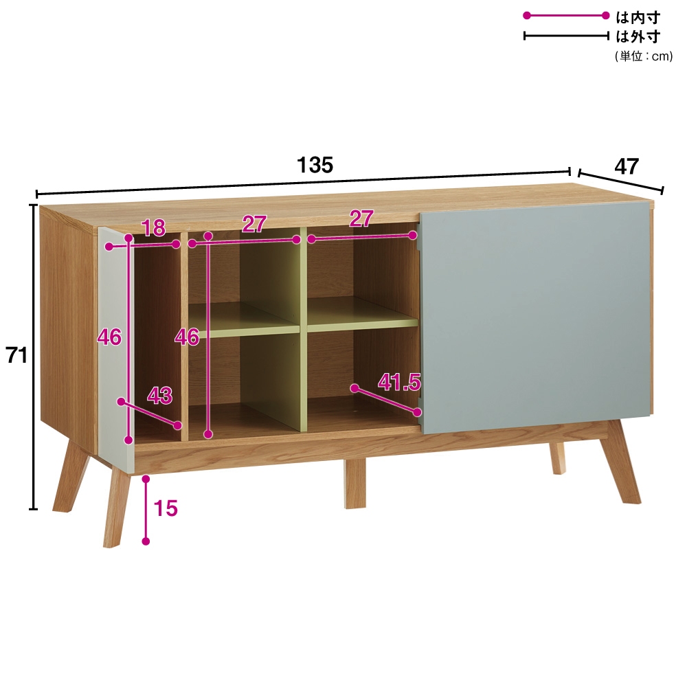まるでアートのような北欧インテリア。どこにあっても「絵」になる、軽やかで美しい存在感のリビングボードです。木の質感を活かした家具を生み出すデザイナー、レオナルド・ファイファーによるデザインで、日本国内ではディノスだけの取り扱い商品です。ヨーロッパのインテリア雑誌から飛び出してきたような端正で楽しいデザイン●チェイサーサイドボードは、片側がユニークな引き戸仕様。 カラフルな色使いがキュートな北欧インテリアファニチャーです。●お部屋のどこに置いても目を惹くチェストシリーズは、 オークの木目とカラーの組み合わせが新鮮。 リビングボードやサイドボードはもちろん、食器棚としてもおすすめです。●木の質感を活かした家具を生み出すデザイナー、 レオナルド・ファイファーによるデザインです。●引き出しにはblumブルム社のセルフクローズレールを使用しているので開閉もスムーズです。WOODMAN(ウッドマン)1999年創立の東欧エストニアの家具メーカーで、その歴史はオフィス用の小さな木製品の生産からスタート。その後、ヨーロッパで数々のインテリアアワードを受賞するまでに成長しました。さらに、すべての木材が計画植林地から得られていることで、エコ企業の証しであるFCS認証も獲得しています。2011年パリでの展示会でハウススタイリングと出会い、日本で初めて販売する運びに。日本国内ではハウススタイリングだけのお取り扱いです。LeonhardPfeifer(レオナルド・ファイファー)イギリスに拠点を置くデザイナーで、数々のデザインアワードを受賞。家具の修理職人だった父の影響を受け、「木」の素材感を重視しながら都会的な家具をデザインしています。