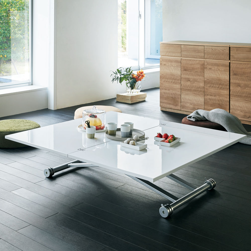 コーディネート例(ア)ホワイト 場面に合わせて伸長・昇降できるフレキシブルなマルチファンクションテーブル。