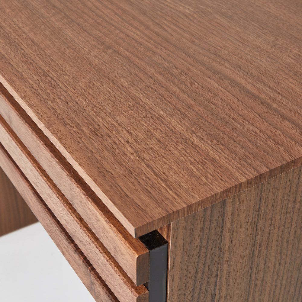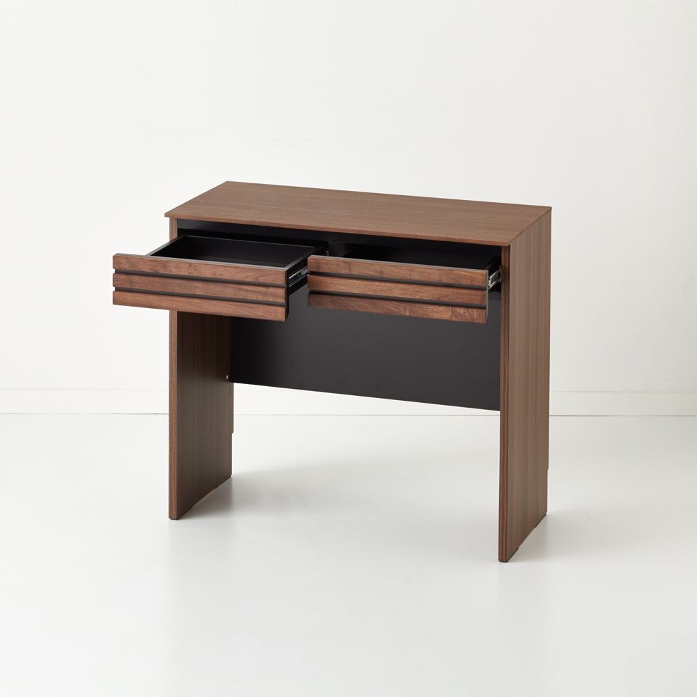 使用イメージ ウォルナットの無垢材と、ブラックレザー調の素材の組み合わせが魅力。