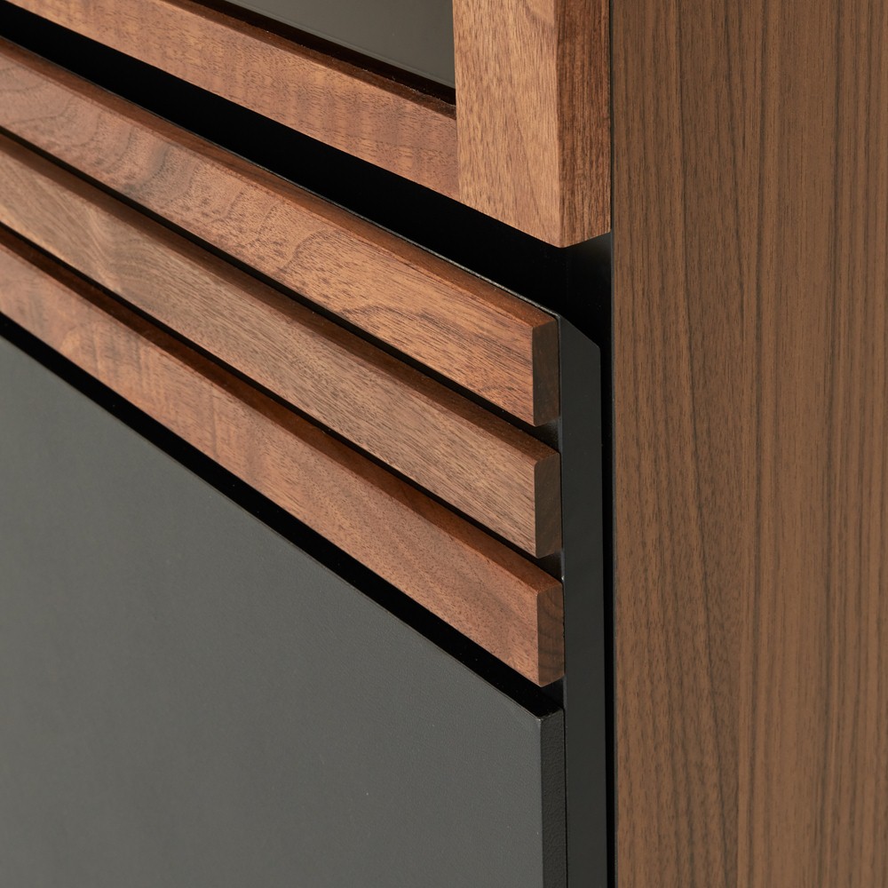 側面には、ウォルナット柄をリアルに再現した表面材を使用。サイドから見てもシックな雰囲気の仕上がり。