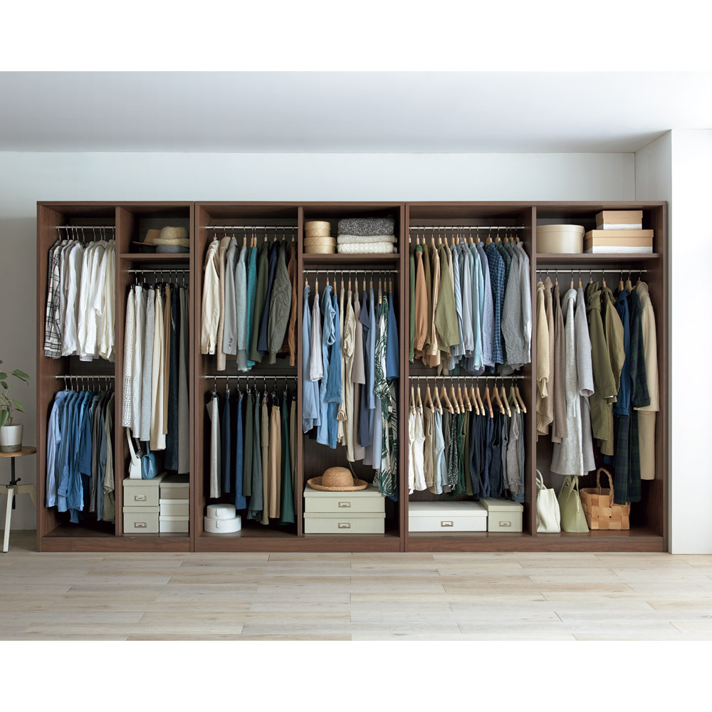 コーディネート例(イ)ダークブラウン 引き戸タイプだから開閉スペース不要。寝室にも置きやすいクローゼットです。