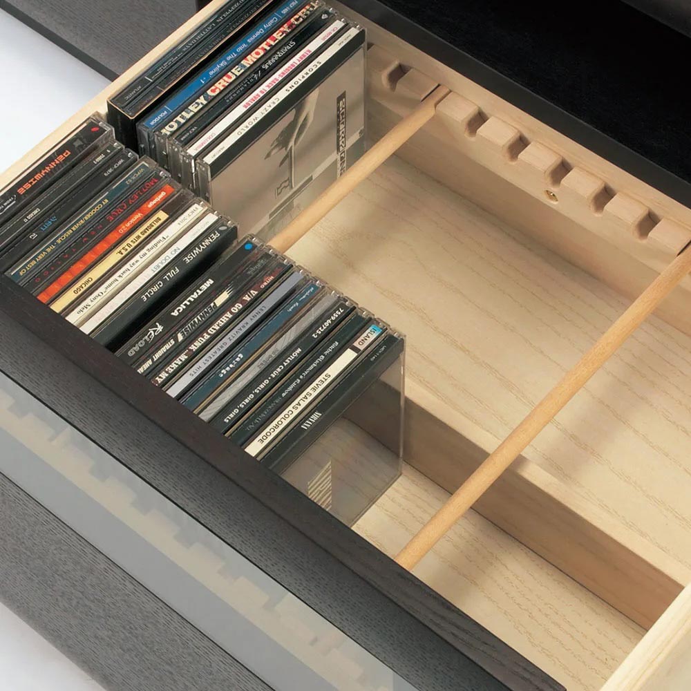 中央引き出しにはCDやDVD収納に便利な仕切り付き。