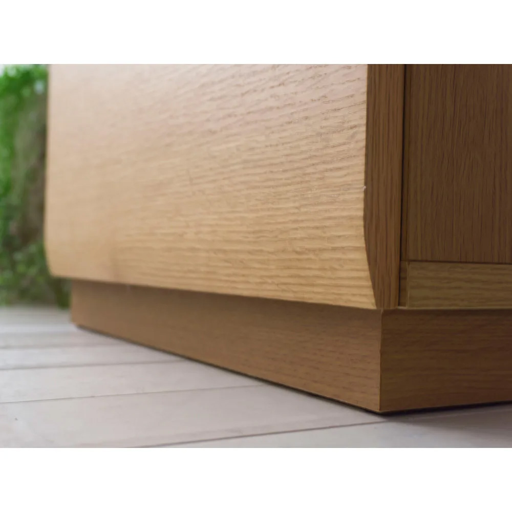 丸みを帯びた美しいフォルムと、オーク材の端正な木目が調和し、美しく確かな存在感を醸しだすテレビ台シリーズ。高級感のあるアールデザインで、デザイナーズマンションのような垢抜けた空間へ。あたたかみのある天然木にRデザインでお部屋に優しい空間を●しっかりとした台輪部、天板に丸みを持たせたデザインなど、安定感のあるフォルムが魅力。●オーク材の端正な風合いが上質な空間に溶け込みます。●人気のRデザインテレビボードにハイタイプが追加。ソファダイニングでも見やすい高さ設計です。●収納家具で使いやすいチェストタイプも追加しました。配線や使いやすさにもこだわった工夫●背板が無いため、配線も楽です。配線をすっきり収納できるポールがついており、ごちゃつきも防止できます。●扉収納部は高さ調整が可能でDVD、CDがぴったり収納できます。●デッキ部分はブロンズガラスを使用し、閉じたままでリモコンを使用できます。●デッキ最大3代収納可能でAVボードとしておすすめです。●扉部分はプッシュ式で開け閉めがスムーズです。●角がないアールのデザインは、美しいだけでなく、お子様のいるご家庭でも安心してご利用いただけます。商品担当者からのメッセージ●ブロンズガラスとオークの木目のアンマッチ感が、リビングルームを上質に彩る、ディノスオリジナルのテレビ台です。チェストと合わせてご利用いただけると、奥行もぴったり揃い、部屋をおしゃれに、すっきりとまとめることが出来ます。ソファダイニングに人気の高さ75cmのハイタイプ仕様です。間接照明の映えるブロンズガラスが美しく、夜はお気に入りの映画を見ながら、大人のリラクゼーション空間を堪能していただけると幸いです。