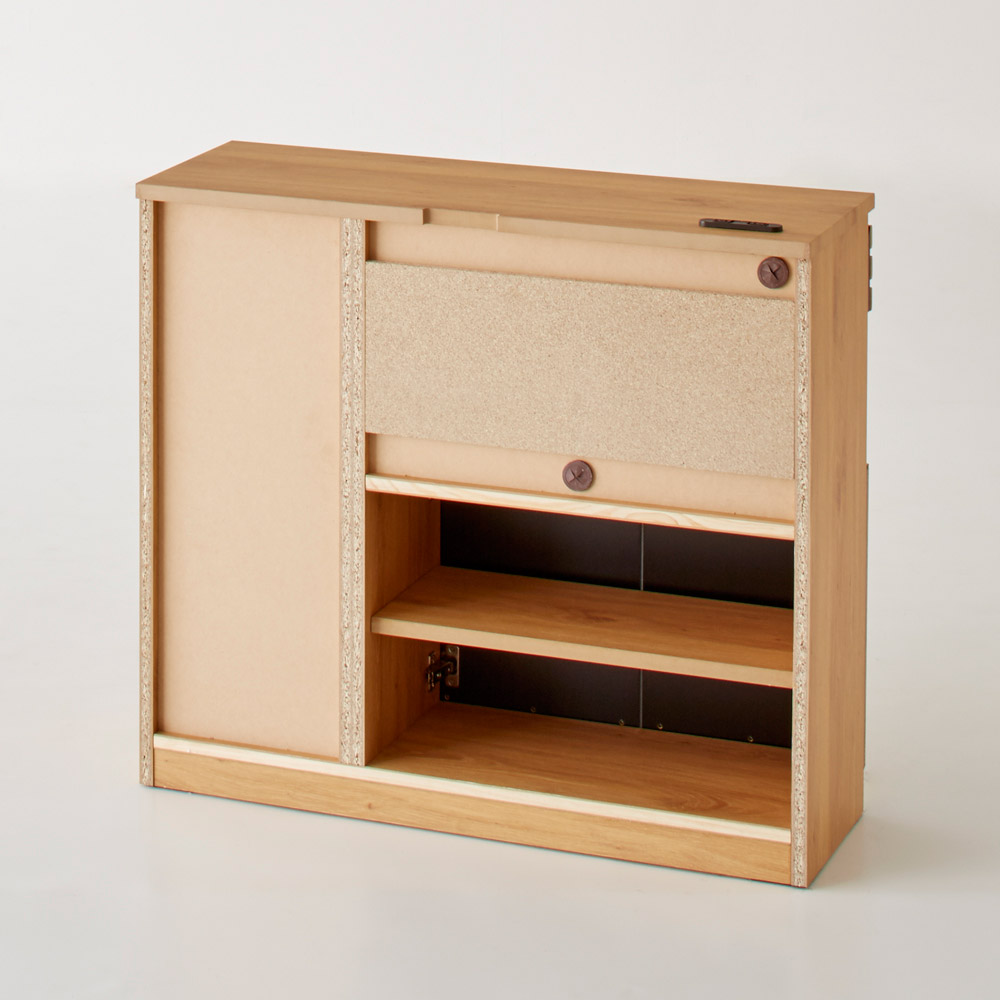 下段の扉内はA4ファイルが収まる奥行きで書類も分類収納できます。