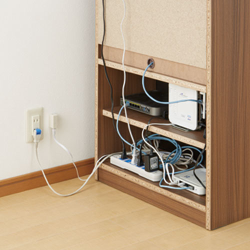ルーターやモデム、タップやコード類まですっきり収納。