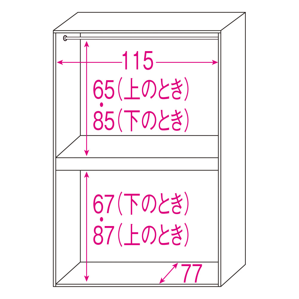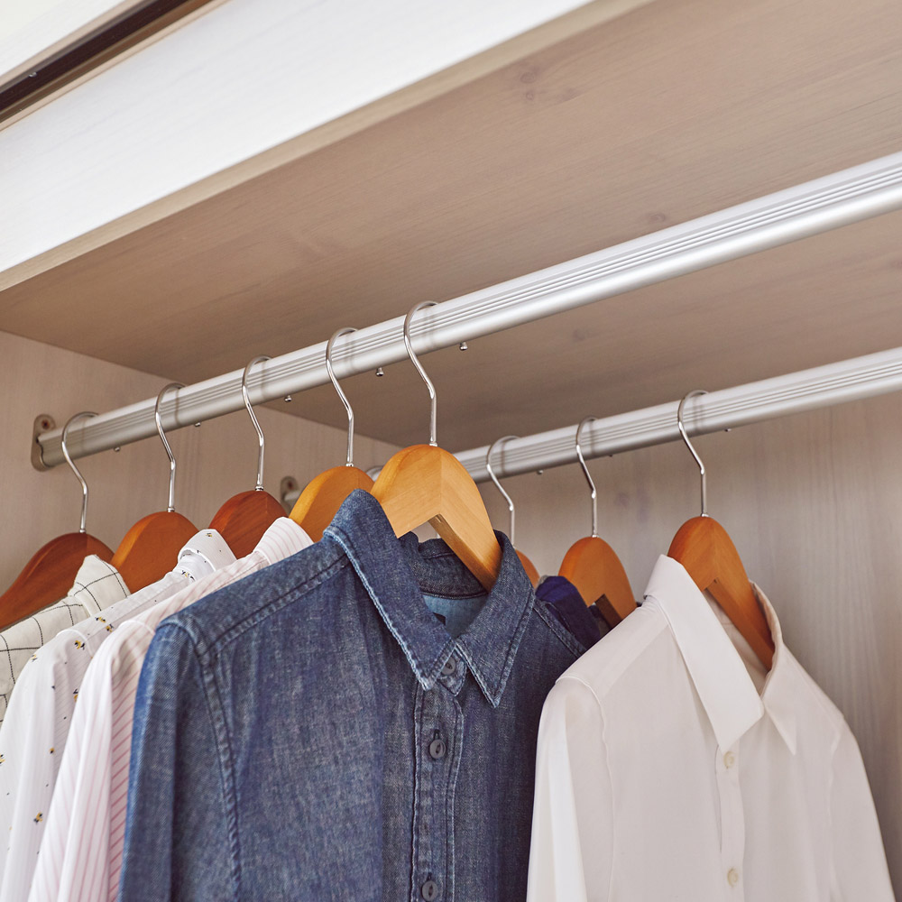 上段はダブルハンガーで充実の収納力です。取り外しも可能です。