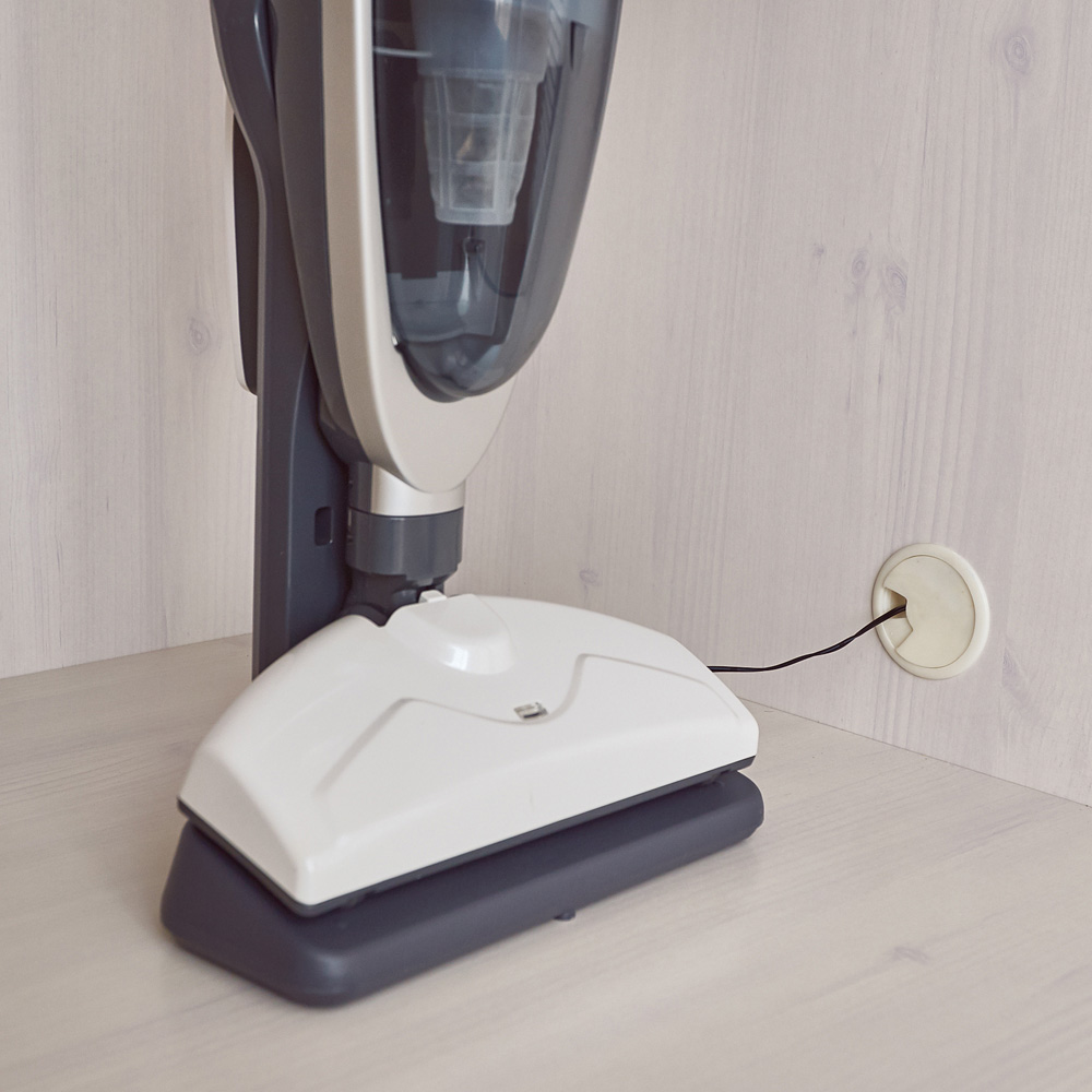側板に配線穴があるので、掃除機を収納したまま充電可能。