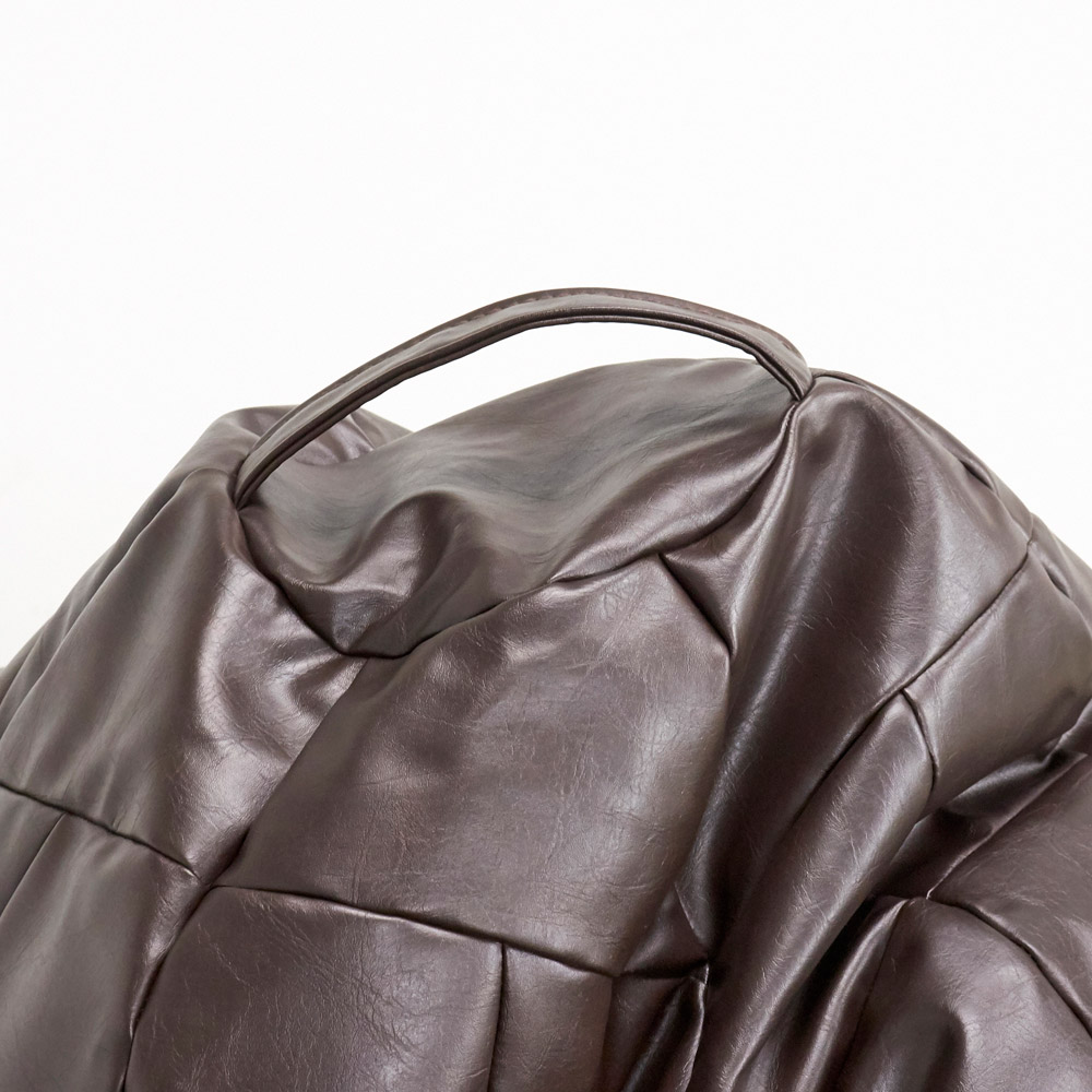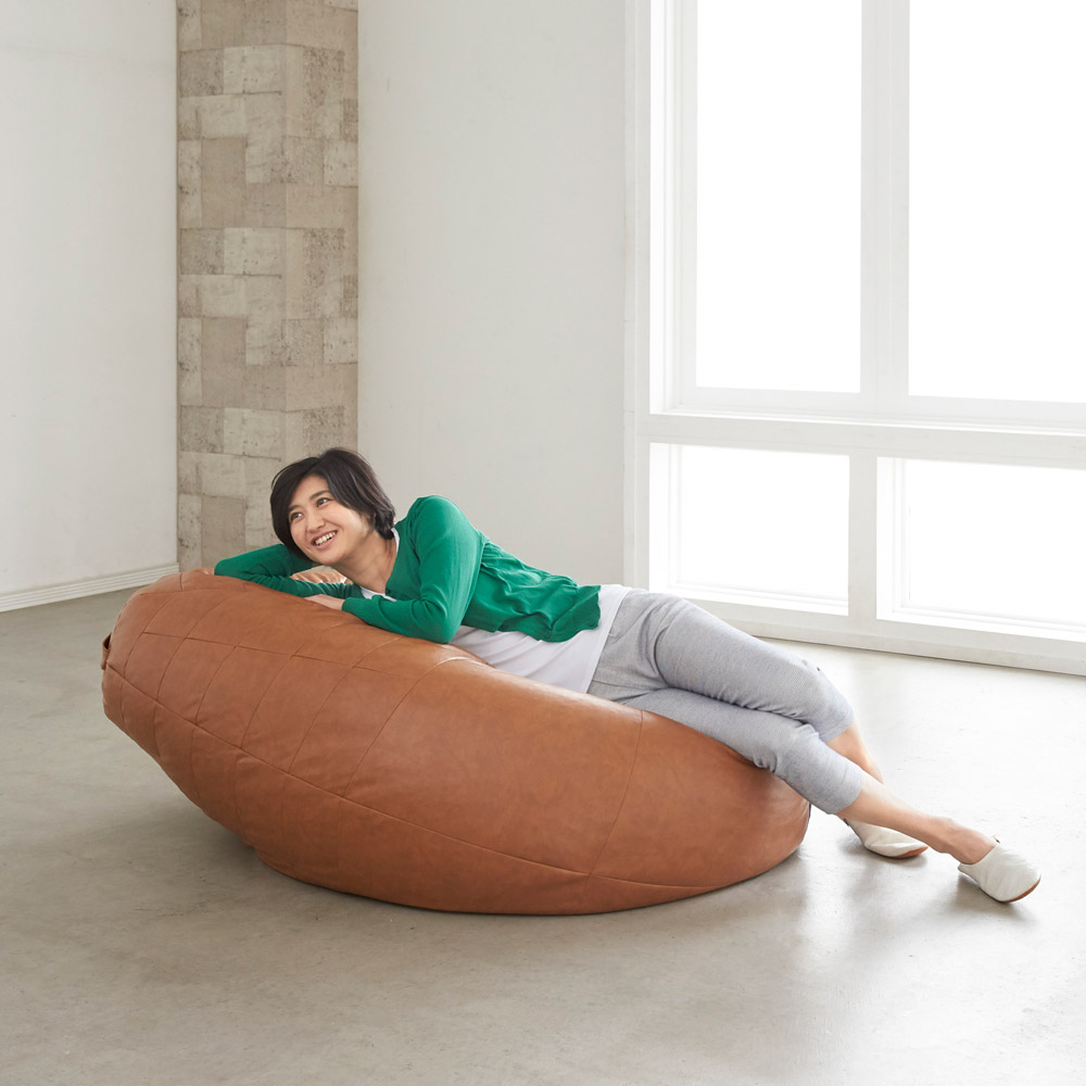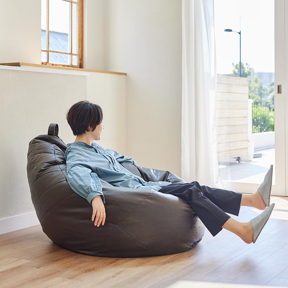 インテリアとしても映えるのが魅力のモダンビーズクッション。しっとりした質感で、いつまでも座っていたい気持ちに。〜体を預けた時の包容力がたまらないビーズクッション〜◎インテリア性と使い心地が両立したビーズクッションです。 ◎丁寧で繊細なキルティングを施し、「一人掛けソファ」と呼びたくなるハイマテリアルのビーズクッション。 ◎存在感のあるサイズとデザインが特徴的。 ◎中材は大きめのビーズ(3mm〜6mm)でざっくりとした感触で、大きめサイズならではの包まれるような快適な座り心地。 ◎移動に便利な取って付きなので、持ち運びも楽々