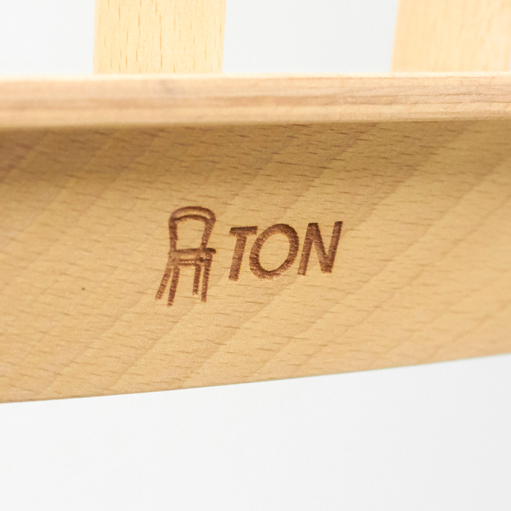 創業160年を迎えるにあたり、Tonのロゴが新しくなりました。中央の「o」は、Tonの革新的な方法で曲げ加工された木材をモチーフに、持続可能性、完璧さ、そしてTonの椅子やテーブルを愛用する家族の輪を象徴しています。(商品の刻印は、在庫に応じて順次切り替えられます)