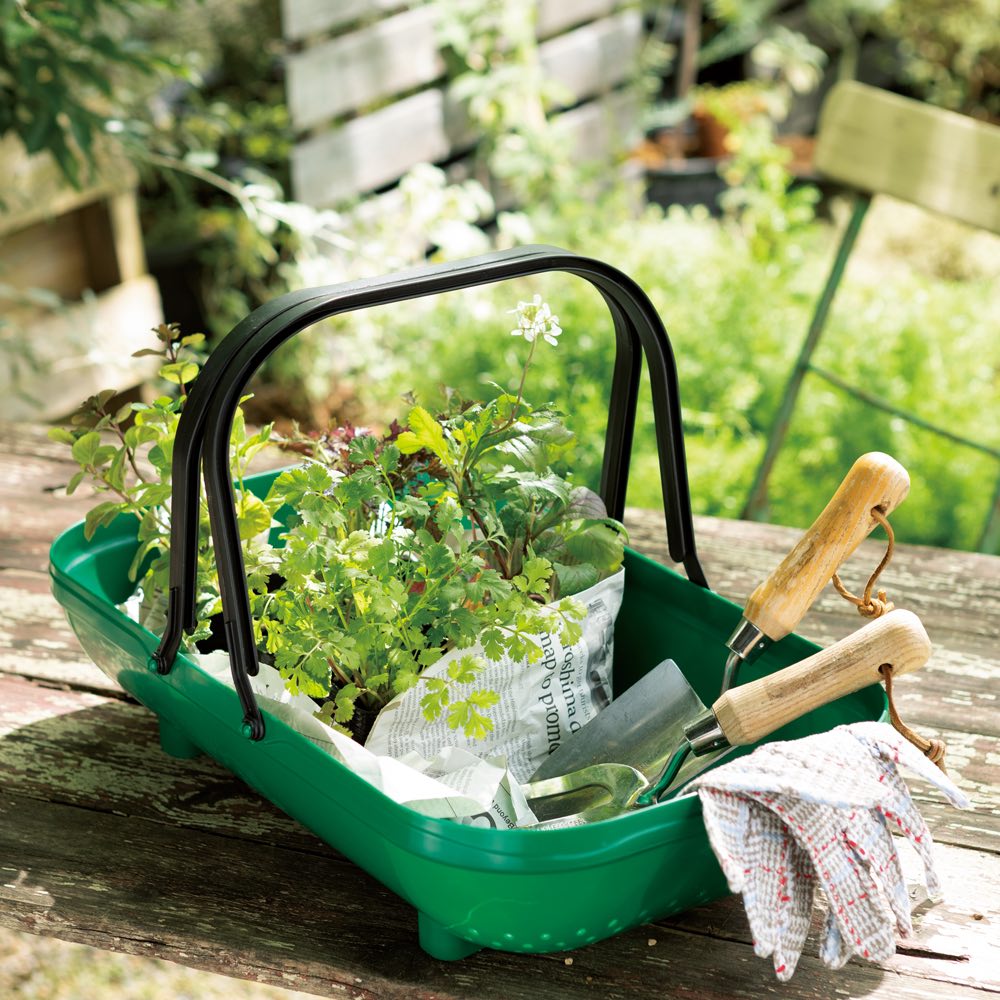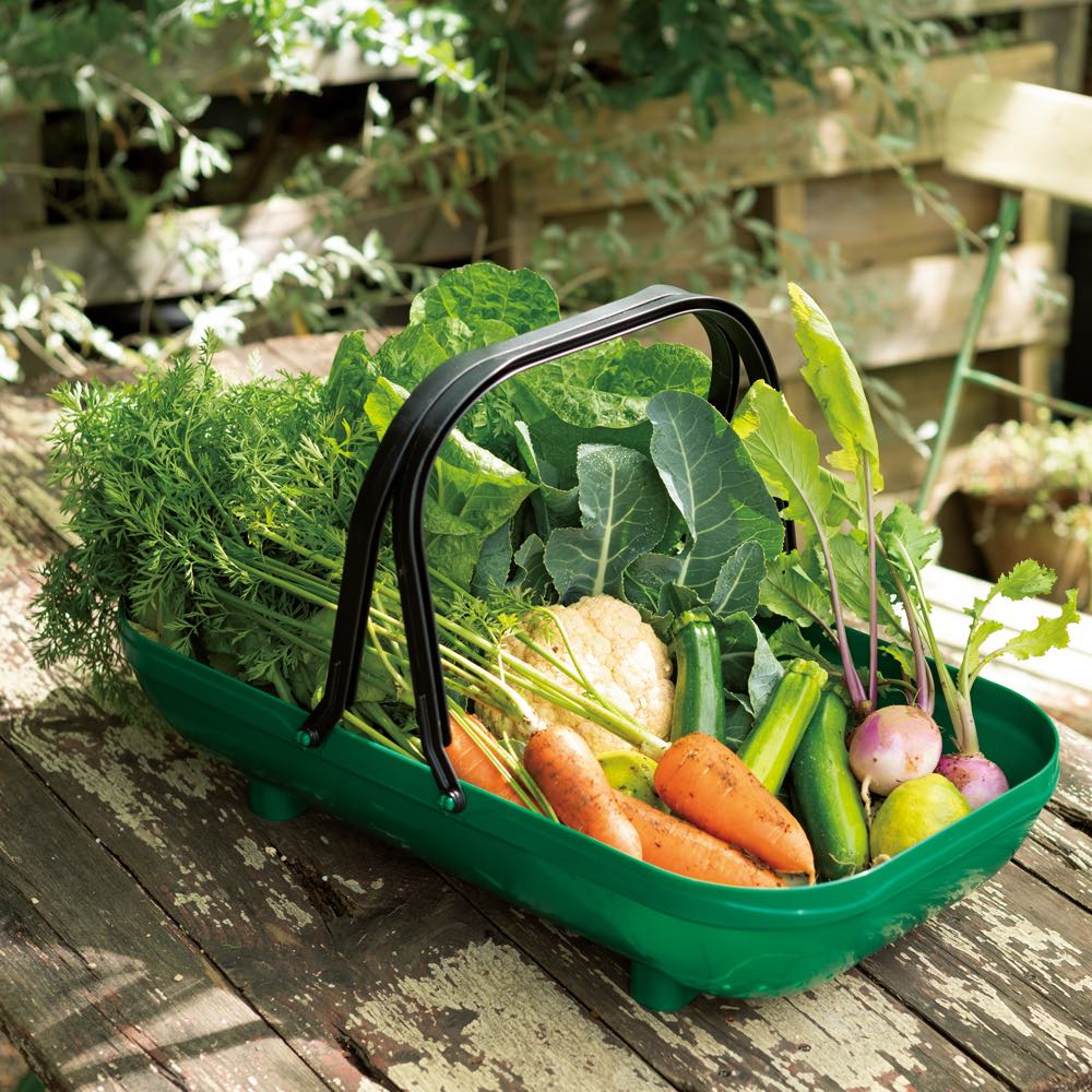 収穫した野菜の持ち運びに、苗の運搬に、ガーデンツールの収納に、1台あれば大活躍。英国製です。野菜や草花、収穫物の保管や園芸用品の収納に。収納や洗濯、レジャーにガーデニングにと様々なシーンで使える万能さが魅力です。丸洗いできるからインドアだけでなくアウトドアにもおすすめ。鮮やかなグリーンカラーでインテリアのアクセントにもなってくれる便利なガーデントラッグです。