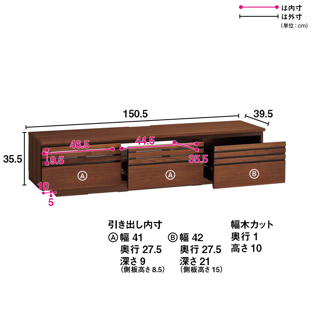 天然木ならではの美しい質感。落ち着いたスタイルと頼れる収納力を兼ね備え、暮らしに沿ったサイズ展開が自慢のリビングボードシリーズ。格子に天然木をふんだんに使用した上質感のある佇まいが空間に品よくなじみます。格子に天然木を贅沢に使用した上質感ウォルナットもしくはオーク天然木を使用しているのでお客様をおもてなしするリビングに、お洒落で格調高い空間を作り出します。●シックで落ち着いた色合いの『ウォルナット』ダークブラウンを主体とした、ナチュラルモダンスタイルにおすすめです。●自然で柔らかい光が似合う質感の『オーク』トレンドの北欧インテリアとも相性の良いナチュラルカラー。リビングに上質さとスマートな印象を素材にこだわったシンプルなデザインが上質さを醸します。大型テレビにも対応するラインナップが自慢。豊富な品揃えからぴったりが選べるナチュラルなリビングボードシリーズです。高さ35.5cmのローボードタイプのテレビ台は、床やソファに座ってのテレビ鑑賞におすすめです。機能面へのこだわり幅150.5cmなら60型まで、幅180.5cmなら70型まで、幅200.5・240.5cmなら80型までのテレビに対応しています。デッキ収納部の背面はオープン仕様。ストレスなく配線ができます。扉・引き出しのスリット部分には3mm厚のガラス窓仕様。閉めたままリモコン操作が可能です。背面に巾木よけカット(高さ10奥行1cm)があるので、壁にぴったりつけて設置できます。CD・DVDもたっぷり収納できる引出しスライドレールなので開閉もスムーズで奥まで出し入れが簡単です。検索性の高い引き出し構造で、ストレスなくお気に入りのメディアを探せます。組み立て不要の完成品テレビボード完成品のためお届後すぐに使えるテレビボードです。
