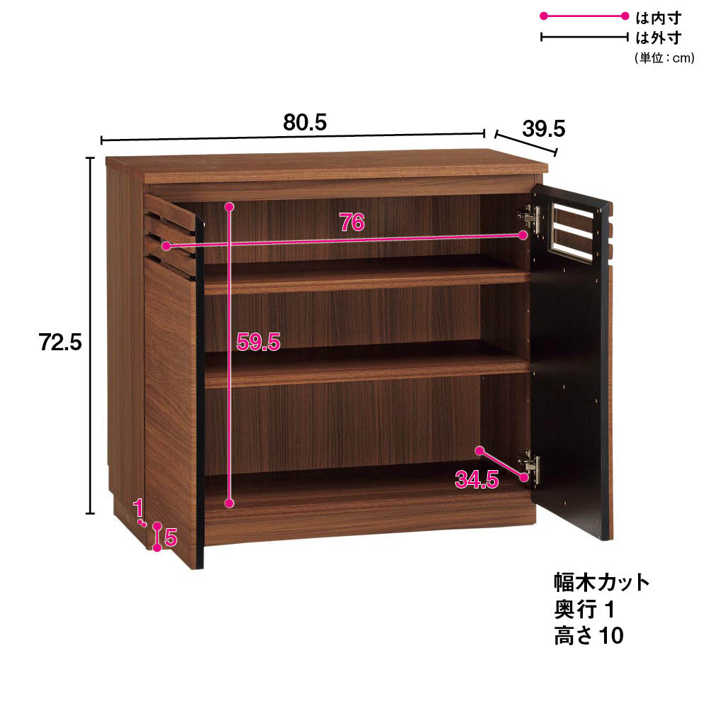 コーディネート例 お届けは(左)キャビネット幅80.5タイプ (イ)オーク