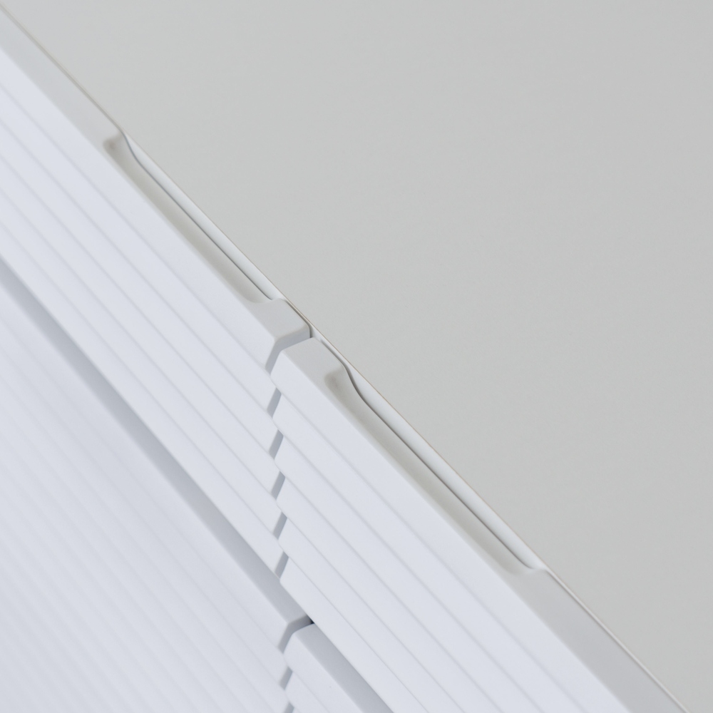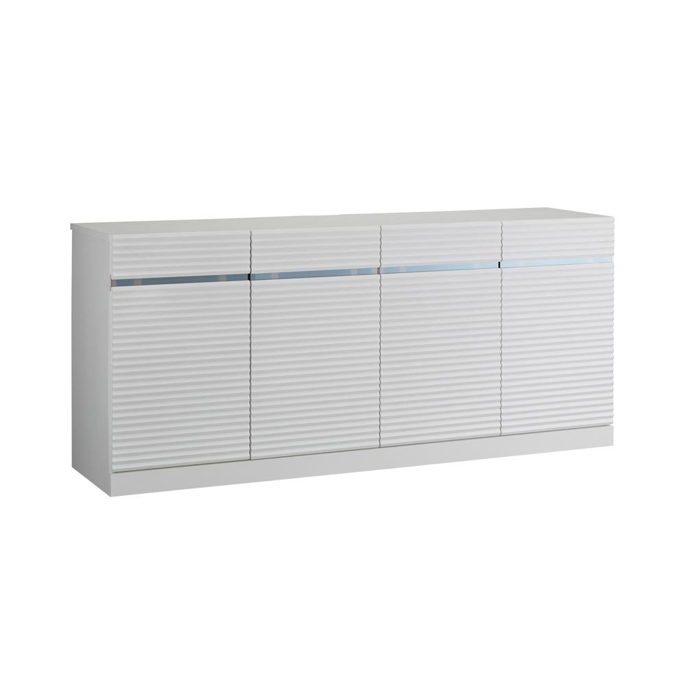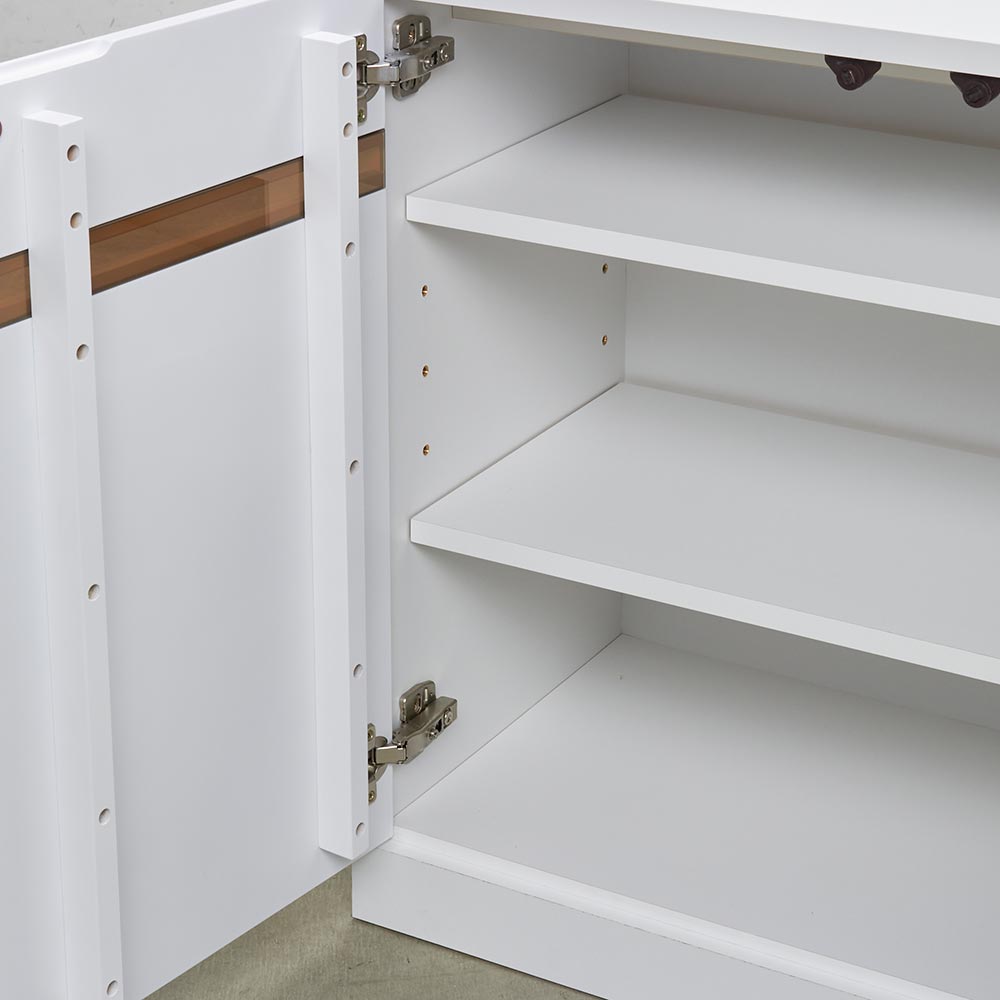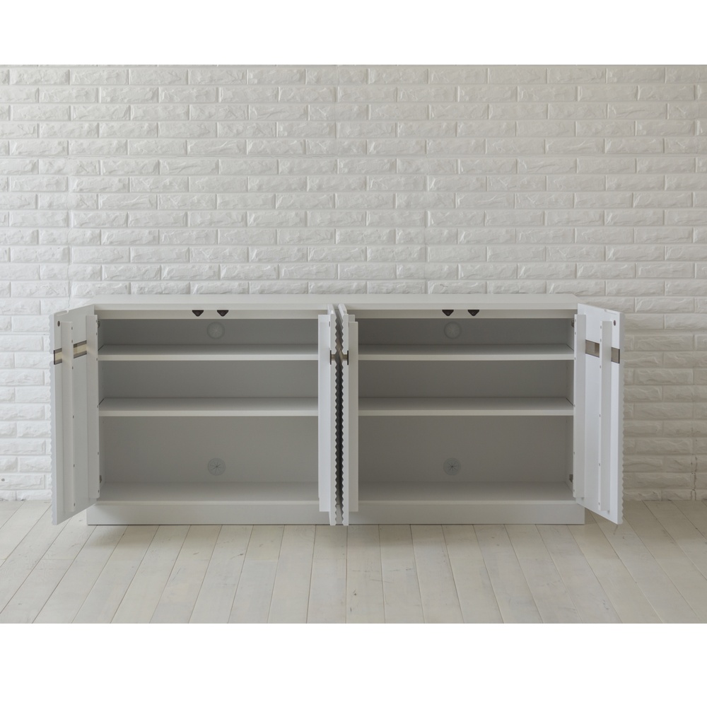 前面に施した立体的なボーダーがリッチなインテリアを叶えるシリーズ。コーディネートしやすいホワイトの家具に丁寧な加工を施すことで、他とは一味違う上質な存在感を放ちます。