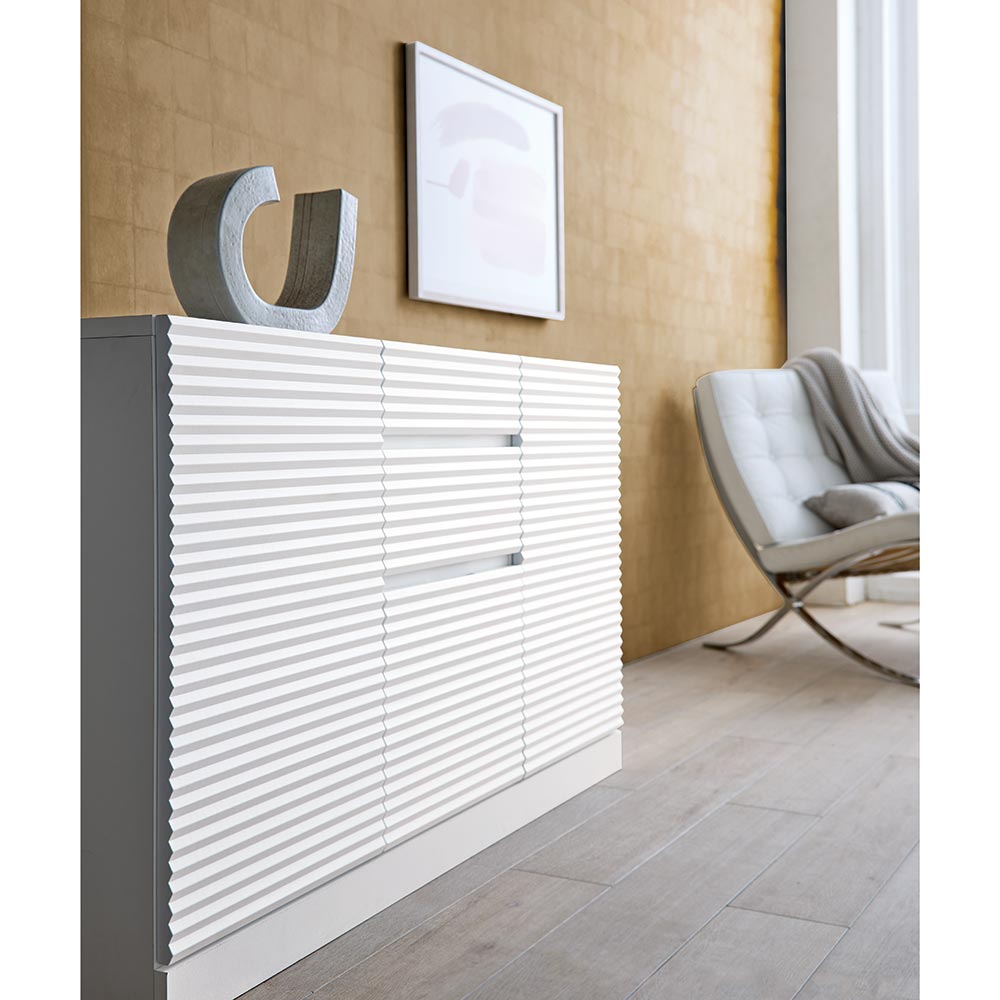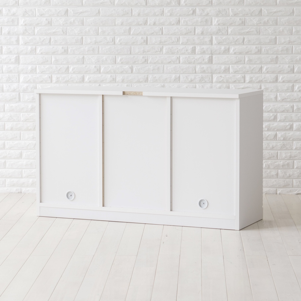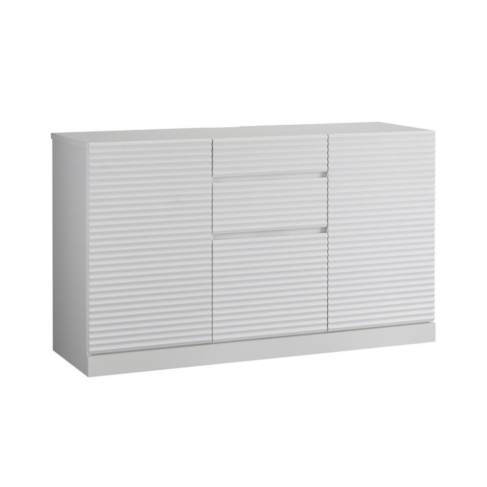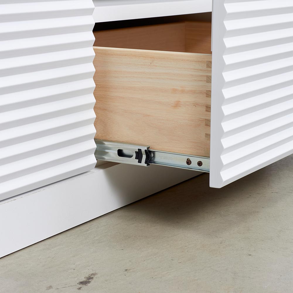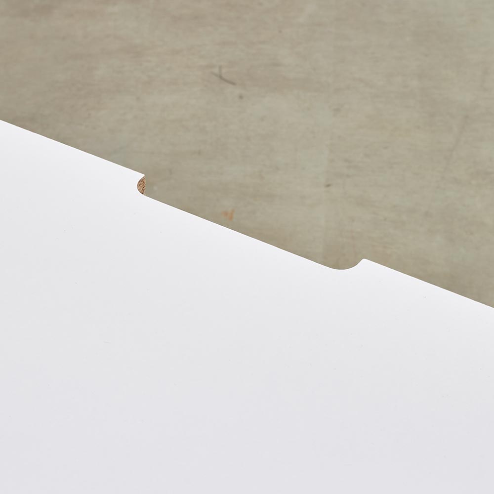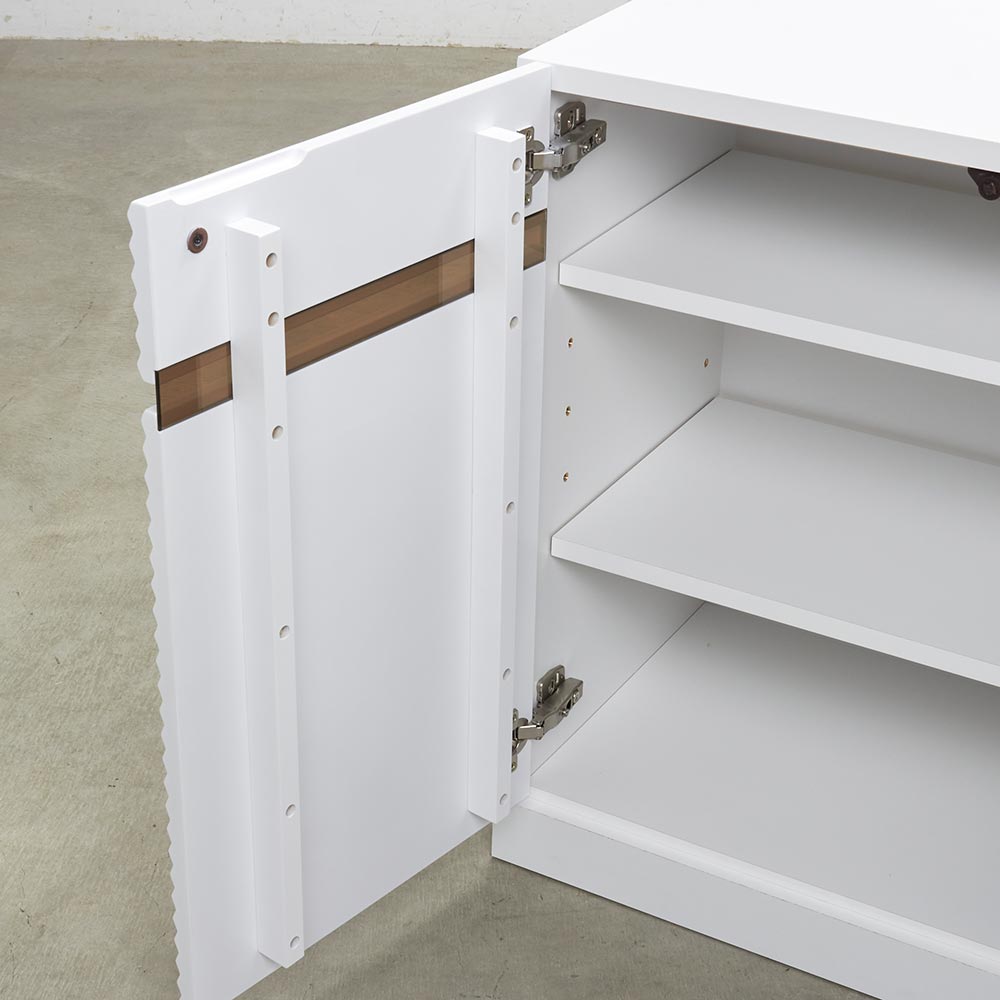 前面に施した立体的なボーダーがリッチなインテリアを叶えるシリーズ。コーディネートしやすいホワイトの家具に丁寧な加工を施すことで、他とは一味違う上質な存在感を放ちます。