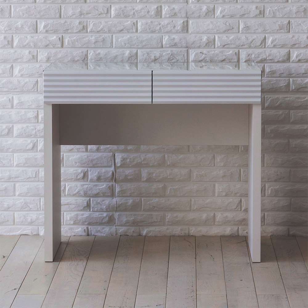 前板に施した立体ボーダーがリッチな存在感のデスクシリーズ。こだわりを感じさせる正面のあしらいも魅力的ながら、コーディネートしやすいホワイトカラーで統一。インテリア上級者はもちろん、ビギナーの方も安心して取り入れることができるデザインにこだわりました。インテリア初心者さんから上級者まで。立体ボーダーの表情で魅せる洗練のホワイト家具のオリジナルシリーズ空間に明るさと広がりをもたらす人気のホワイトカラーの家具を、ハウススタイリングがモダンにグレードアップ。前板に施した立体的なボーダーラインが陰影ある表情を魅せる洗練のデザイン。どんな壁紙、フローリングにも合わせやすい、定番の白色に凹凸で表情をつけることで、一味違う個性を持たせました。トータルコーディネートできるサイズバリエーション日本の住宅に合わせて海外輸入ブランドに比べてコンパクトなサイズ感に仕上げ、収納部の大きさなども日本の一般的な収納物を参考に設計しています。トータルコーディネートできるように、奥行や高さを揃えたバリエーションを豊富に展開し、それぞれのご自宅に合った組合せが可能です。インテリア上級者はもちろん、ビギナーの方も失敗なくお部屋に迎え入れやすいラインナップが魅力です。つややかなガラス天板で使いやすさにもこだわった機能性■天板にはクリアなガラスを乗せてつややかに。■固く絞った付近で水拭きすればあっという間にきれいになってお手入れも簡単。■天板奥にはコード配線用のスリットを設けて、パソコンなどの設置もスマート。■引き出しはA4の紙が入るサイズで書類の整理にも。■複数設けられた引出は文房具やガジェットの整理整頓にも便利です。シンプルなパネルレッグとスリムな奥行でリビング使いにも■奥行41.5cmのスリムサイズで書斎だけでなくリビングダイニングへの設置もおすすめ。■同シリーズのキャビネットやチェストとコーディネートしやすいパネルレッグタイプを採用しました。■リビング収納のハイタイプテレビ台やキャビネット・チェストなどと組み合わせて、リビングの一角をワークスペースにしたい際におすすめです。簡単組み立てですぐにご使用いただけます■組み立ては背板と左右の脚部パネルをつけてガラス天板を乗せるのみ。■複雑な作業はなく設置までスムーズに済むよう設計しました。