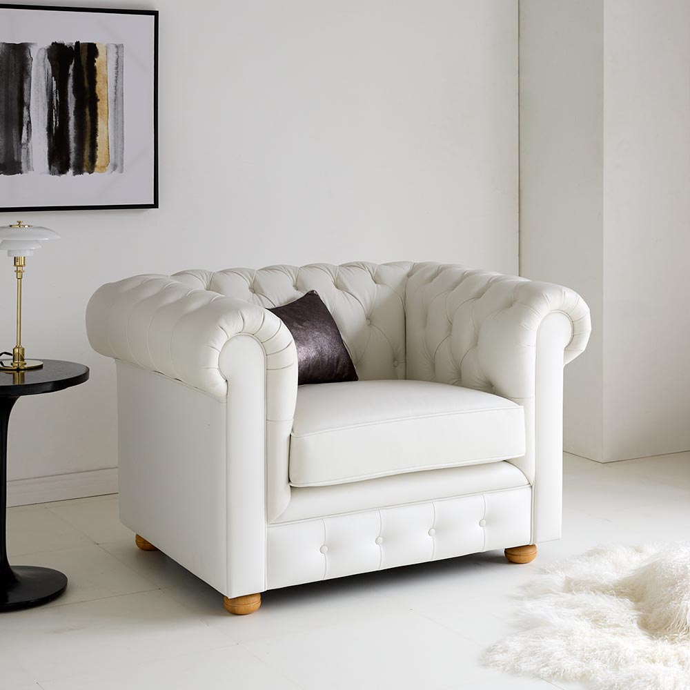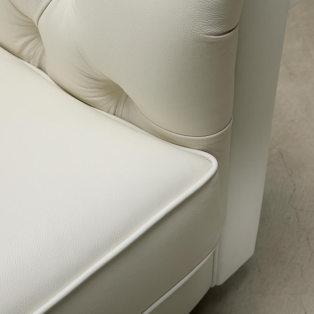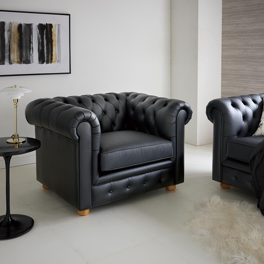 本革に細かいギャザーを寄せた華ある表情に美しいタフティング、天然木仕様の脚にいたるまでリュクスな英国調に。英国調トラッドデザインのチェスターフィールドスタイルのソファが叶えるあなただけの贅沢空間◆クラシカルでゴージャス、中世ヨーロッパ家具を想わせるクラシック風デザイン。◆ボタン留めの伝統的な装飾がアーム部と背面にちりばめられていて、豪華でとってもラグジュアリー。◆本革素材に細かいギャザーを寄せたニュアンス豊かな表情がリュクスで美しいリビングルームを演出します。◆ヨーロピアンクラシック家具をモチーフに、現代のどんなお部屋にも合うようモダンに仕上げました。座り心地もボリューム感たっぷり◆分厚い座面クッション仕様でやや硬めなしっかりとした座り心地の椅子です。◆座面内部構造は鋼製バネとウレタンフォームを敷いたしっかりとしたつくり。◆クッション性とホールド感のある贅沢な座り心地です。◆一つ置くだけで存在感を放つ豪華な仕上げで、リビングダイニングやベッドルーム、パーソナルルームや客間にもおすすめです。チェスターフィールドソファとは?英国発祥のデザインで背もたれとアームが同じ高さでボタン留めされた革張りの大きなソファのことを、チェスターフィールドソファと言います。名前の由来は諸説ありますが”英国紳士のシンボル”と呼ばれ、ダンディズムの象徴となっているフィリップ・チェスターフィールド伯爵(Philip Chesterfield)がデザインしたという説と、愛用していたという説、英国チェスターフィールド市の第4代市長であるフィリップ・スタンホープ Phillip Stanhope (1694 - 1773)にちなんでこの名前がつけられたという説などあります。商品担当者からのメッセージ海外インテリアのような重厚感のある素敵なお部屋の雰囲気になるヨーロッパ調家具はディノスの人気商品です。クラシック家具やアンティーク家具とのお部屋コーディネートにもぴったり。届いたその日からご使用いただける完成品なのも魅力のひとつです。ディノスが自信を持ってお勧めする輸入インテリアをお楽しみください。