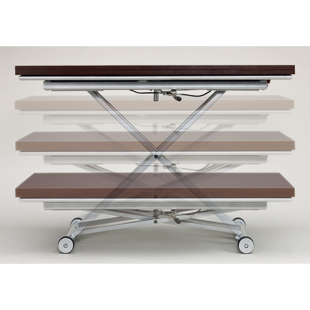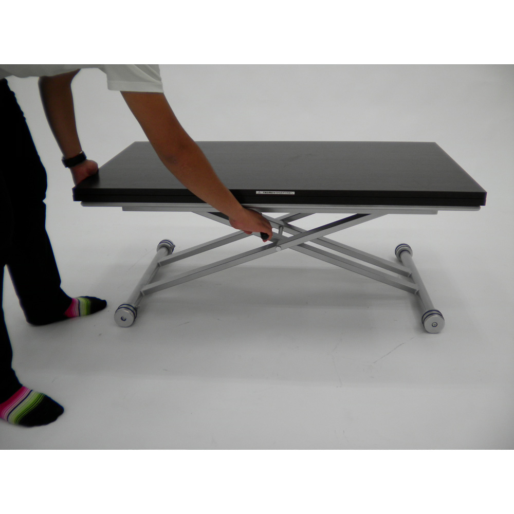 天板下のレバーで無段階リフトアップ式。 天板高さ33cm〜74cm迄無段階調節が可能です。