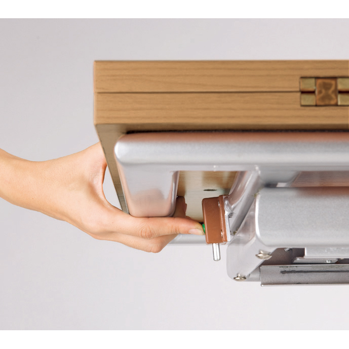 天板下のレバーを引きながら昇降させます。
