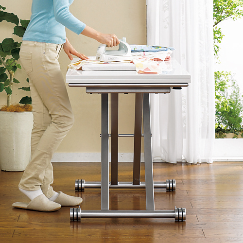 (ア)ホワイト 高さを変えて立ち仕事も。天板耐荷重約20kgです。
