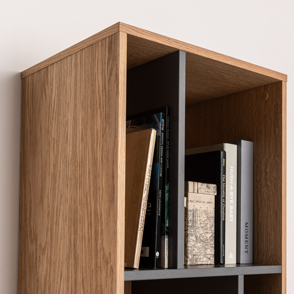 エストニア発の北欧メーカーが生んだ美と機能ブックケース。大小の幅仕切り板で、背の高い雑誌等の収納に最適。ナチュラルxグレーのバイカラーの北欧らしいスタイル。■世界に発信する北欧家具メーカースカンジナビア半島に近接するエストニアから誕生したWoodman社。北欧家具の伝統と技術を受け継ぎながら、デザインと機能を追求。ヨーロッパを中心に多くのセレクトショップから支持を集めています。■機能的な収納デザイン収納部は大小に分かれ、雑誌や本、小物などサイズに合わせて整理できます。特に細めの収納部は、本が倒れにくい寸法で、背の高い雑誌の収納もすっきりと美しく収納。収納部内寸 大 幅28cm、小 幅12cm。奥行33cm、高さ39cmは、共通。■手軽な設置と安心設計組立は脚部のみで簡単に設置可能。壁面への固定で、安定・安全性を確保。脚内寸は幅38cm、高さ14cmで、お掃除もスムーズです。【安全にお使いいただくために】・組立後の本体設置は必ず2名以上で行ってください・本体を起こす際は脚をてこにしないでください(脚や本体の強度に影響を及ぼす可能性があります)・必ず付属の転倒防止金具で壁面に固定してください
