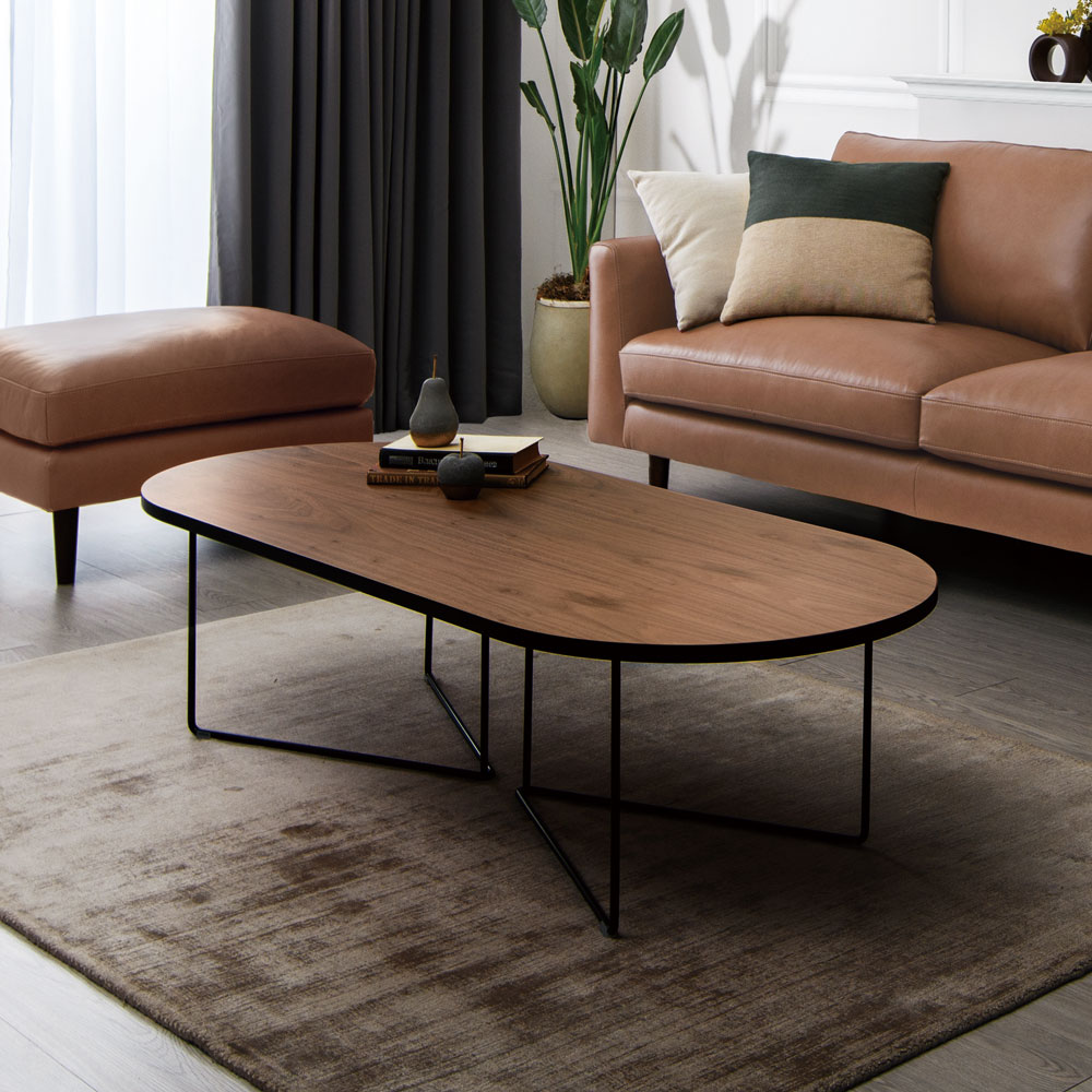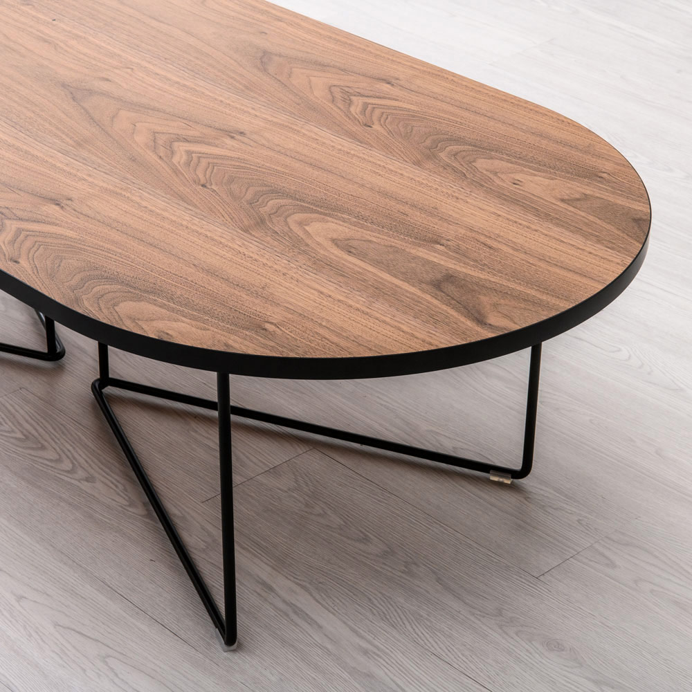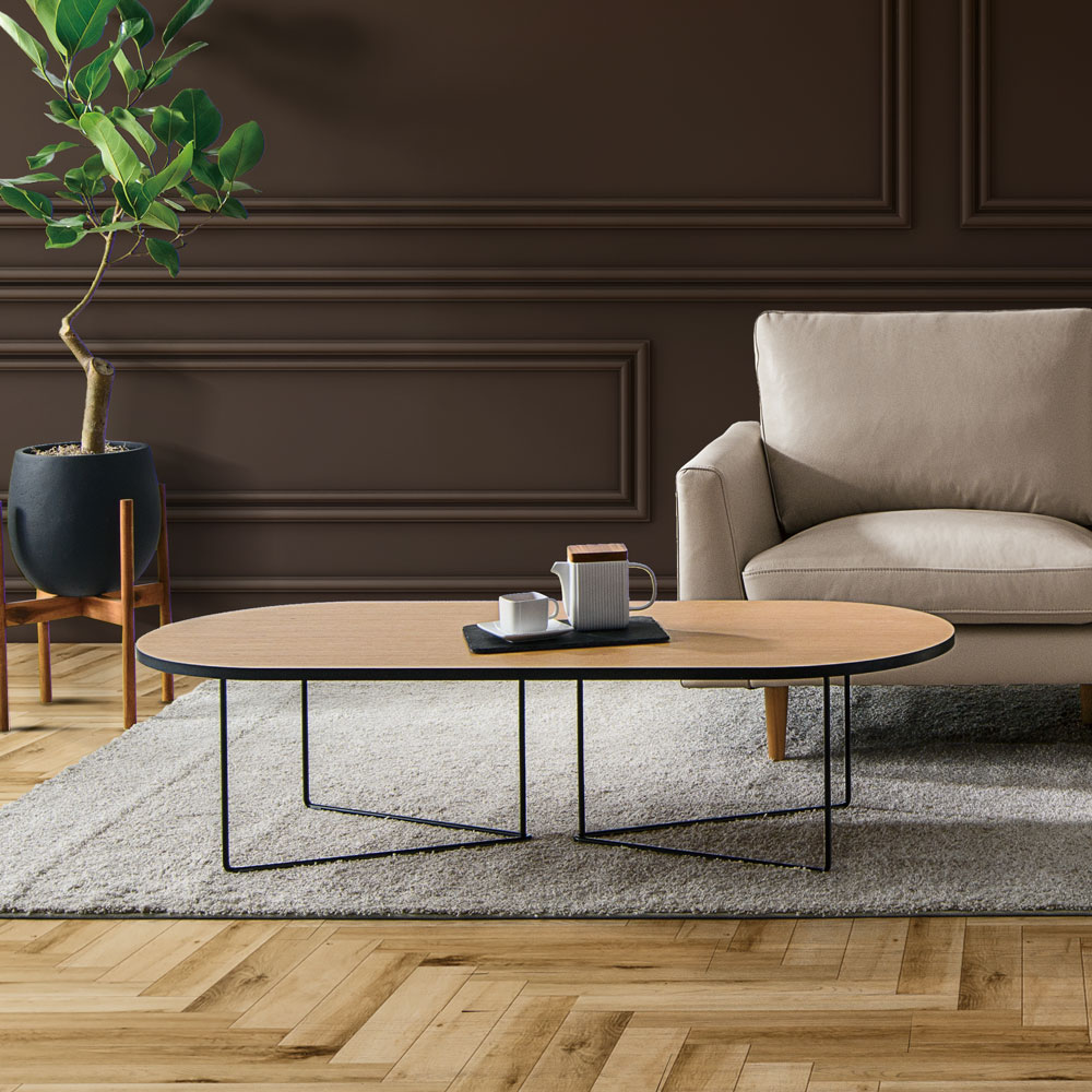 美しい木目は天然木突板ならでは。オーバル型の天板にスチールレッグを組み合わせた、モダンで軽やかな印象のポルトガル製リビングテーブルです。シンプルでコンテンポラリーなデザイン楕円形の天板とワイヤーメタルの脚による大胆なデザインのコーヒーテーブル。機能性、シンプルさ、優雅さが融合したデザインは、どんなインテリアにも美しく馴染み、訪れる人々を魅了します。2種類の天然木突板の仕上げライトオーク:明るい木目でインテリアに明るさと温もりを添えます。ダークウォルナット:クラシックで優雅な雰囲気を提供します。サイズの大きい天板には雑誌や本、植物などを自由なレイアウトで置くこともできます。環境への配慮天板の主材にはリサイクル木材を利用したパーティクルボードを使用しています。すべての木材はFSC認証のサプライヤーから仕入れています。【temahome】テマホームtemahomeは2010年現在、ポルトガル最大の輸出量を誇る家具メーカー。世界40ヶ国1300以上の店舗に商品を供給しています。「使う人の思い思いのライフスタイルを実現してほしい」という願いを込めた「Living your Dreams」というスローガンのもと、自社デザイナー、そして外部の著名デザイナーと開発したプロダクトを次々と発表。ケルン(ドイツ)、ミラノ(イタリア)、ラスベガスとハイ・ポイント(アメリカ)の世界4大家具展示会にて新作を発表しています。シンプルながら、ヨーロッパの香りあふれる「日常のモダン」を感じられる家具として、世界中にファンを増やし続けています。