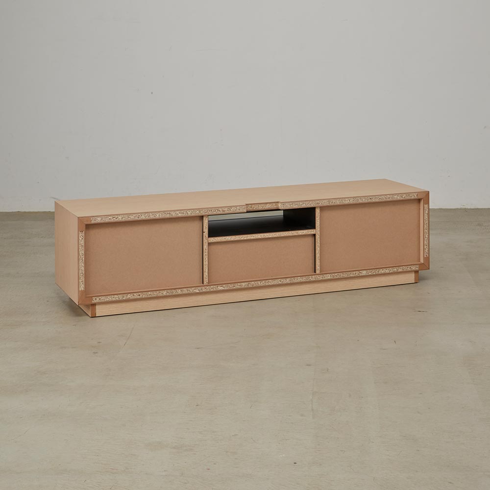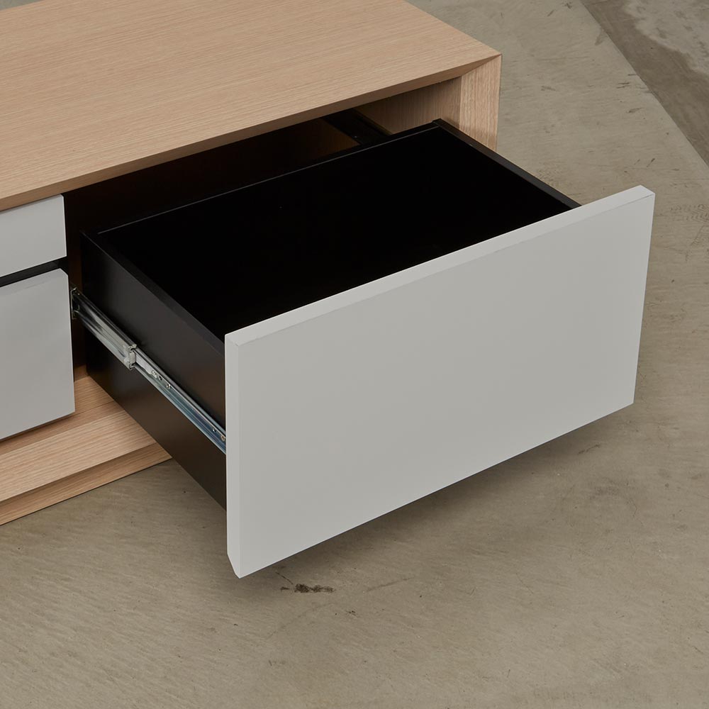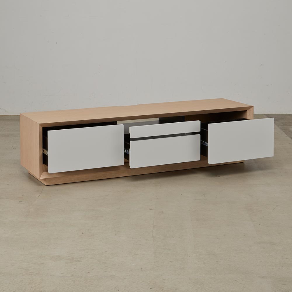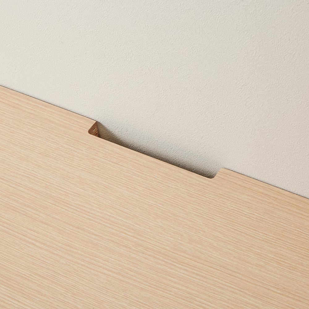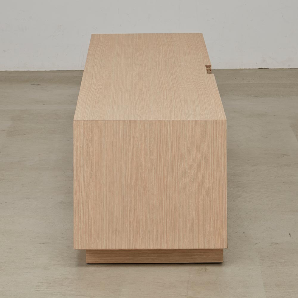 洗練と温もりのマッチングが織なすミニマルデザインの収納シリーズ■洗練されたコンテンポラリーデザインマットなライトグレーの前面とナチュラルカラーのフレームが織りなす上質な佇まい。余計な装飾を排したミニマルデザインで、リビングやダイニングに静かな存在感。取っ手のないフラットな扉面で、壁のような美しさ。■丁寧な造りと美しいディテール4隅の繊細な仕上げが、モダンなスタイリッシュ感をさらに引き立てる。シンプルなデザインなので、様々なインテリアスタイルに合わせやすい。■暮らしに寄りそう機能と使いやすさデッキ収納部の前板にガラスを使用。ほこりが入りにくく閉じた状態でリモコンが使えます。扉内の可動棚で収納物に合わせて自由に整理。キズや汚れが、つきにくいメラミン表面材を使用。お手入れがラクです。■品質へのこだわり日本の品質基準に基づいた企画で、信頼できる日系中国工場での製造。安定感のある頑丈な造りで、長くお使いいただける確かな品質に仕上げました。