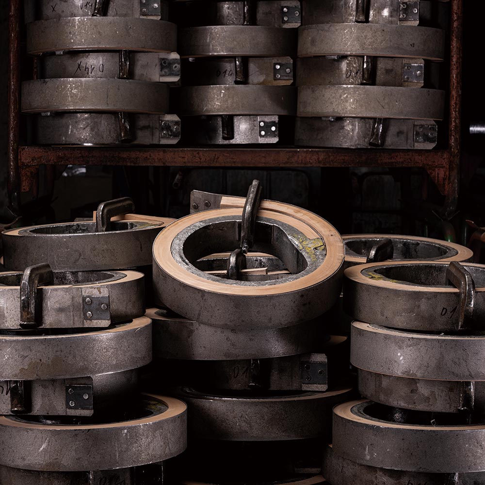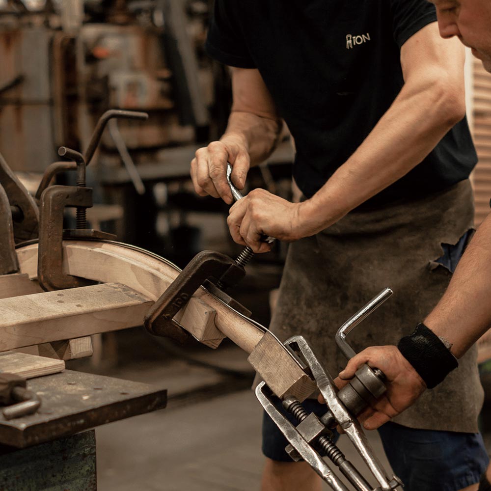 1920年頃の工場での曲げ木の工程。現在でもほぼ同様の技術で生産されています。