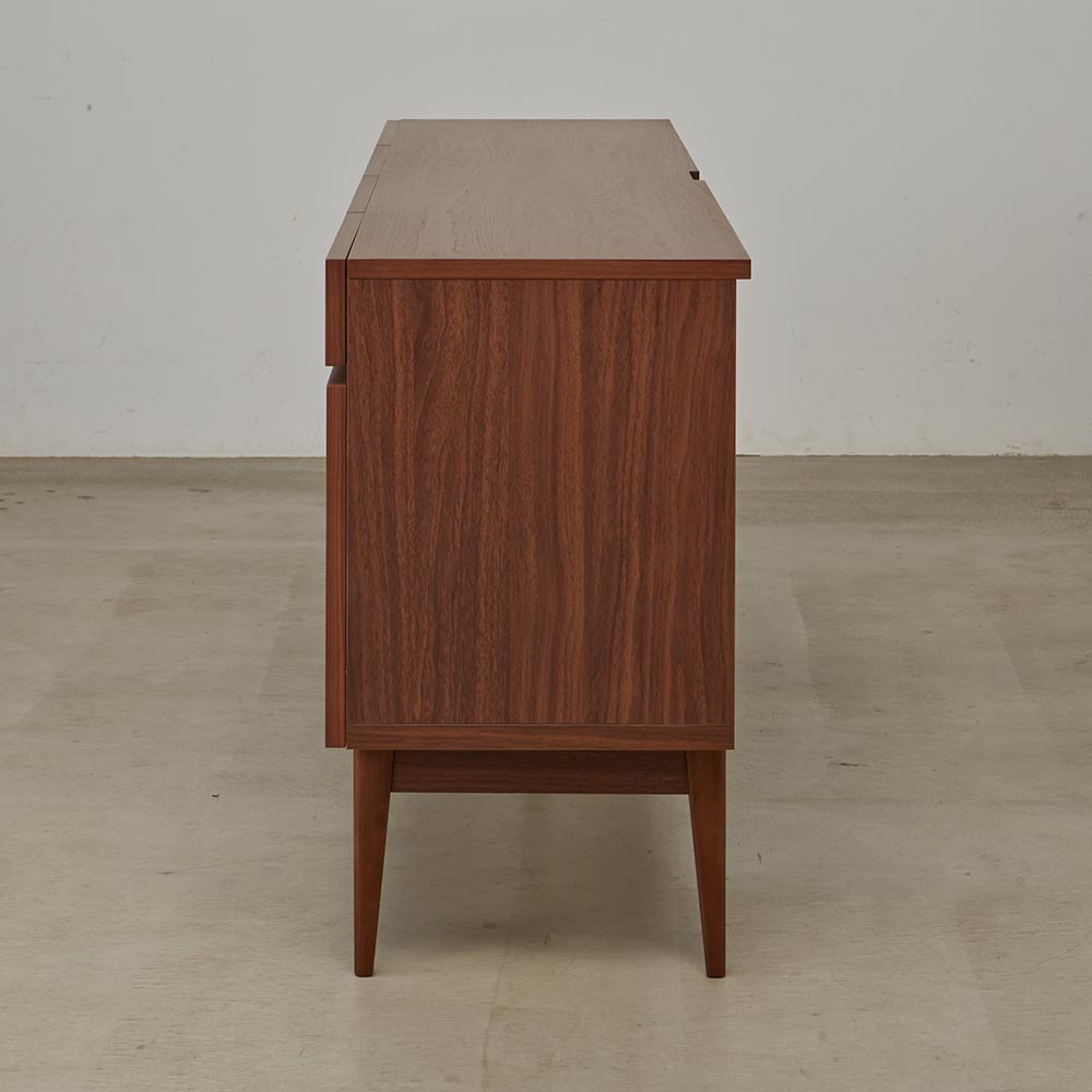 時代を超えて受け継がれる北欧テイスト。目に優しい木目、端正なデザインが空間を美しく彩るシリーズ家具。■シンプルで洗練された北欧デザインウォルナットの落ち着いた木目と、すっきりとしたラインが美しい北欧スタイルのサイドボード。部屋に置くだけで、洗練された雰囲気を演出します。脚部には耐久性の高いバーチ(樺)材の脚5本で、見た目の安定感と実際の強度を両立。■ほど良いサイズで使いやすさと安全を追求した収納設計幅135cmは、部屋に設置しやすいサイズ。必需品の収納や天板を飾り棚として使っても。引き出しと扉収納を組み合わせることで、収納物に合わせて使い分けができます。扉の開閉は、ソフトクロージング蝶番を使用し、例え強く閉めても静かに閉まる安全設計。■上質素材が織りなす確かな品質前面と天板には、高級家具に使用されるウォルナット天然木化粧板(ツキ板)を採用。丁寧なウレタン塗装により、木目の美しさを生かしつつ、傷や汚れにも強い実用的な仕上がり。長く使い続けられる確かな品質です。■日系メーカーによる品質へのこだわり信頼の高い日系企業の中国工場での製造。日本の品質基準と生産管理に基づいたしっかり・丁寧な造りで、長くお使いいただける確かな品質に仕上げました。