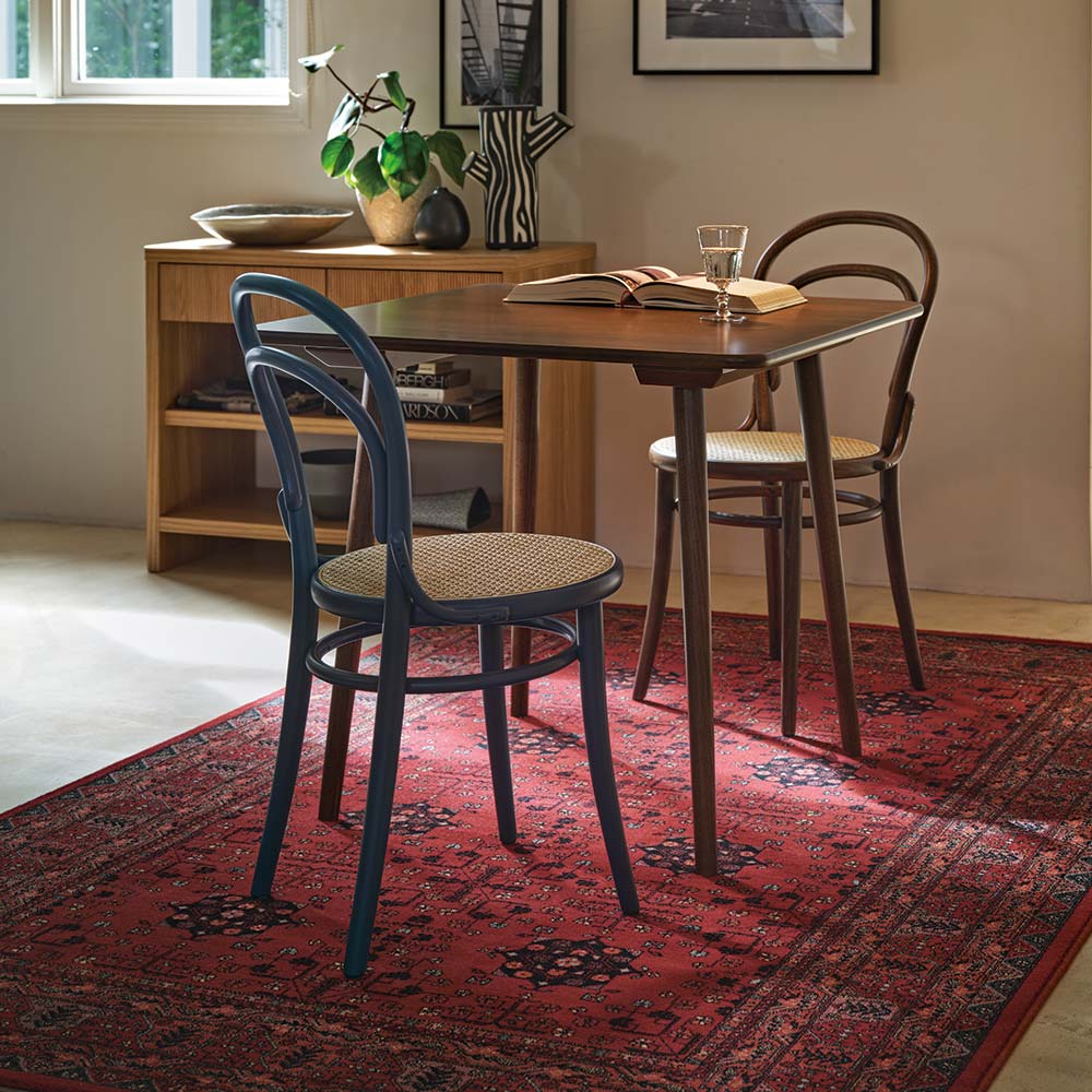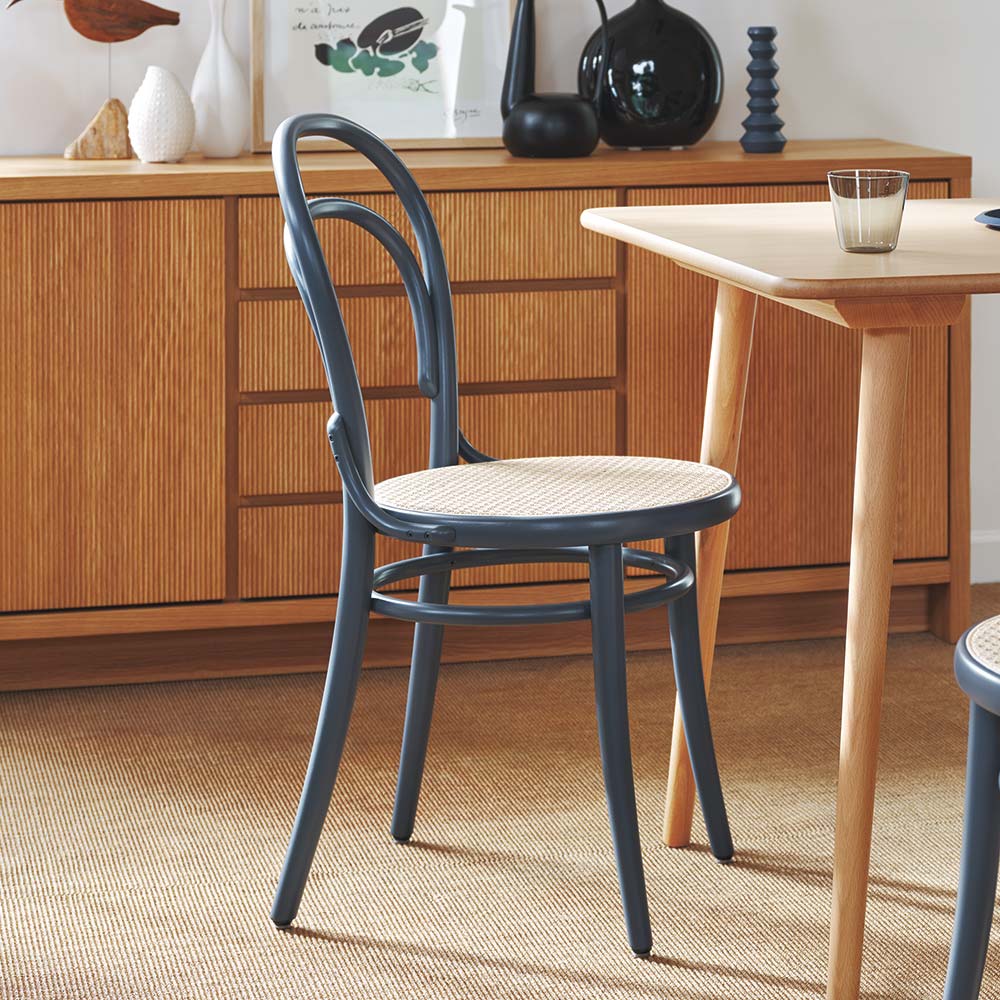 歴史に名を刻む椅子をHOUSESTYLING限定の別注カラーで。丈夫ながら、片手で軽々持ち上がる軽量さ。No.14のチェアは、1859年の発表以来、8000万脚以上を販売。わずか8つのパーツで構成され、背と座は50000回の耐久試験に合格する丈夫な設計です。世界中から愛さ続ける曲げ木細工の老舗「TON(トン)社」1858年、世界的家具メーカー「トーネット社」の源流となる曲げ木工場をスタートさせた、ドイツ生まれの家具職人「ミヒャエル・トーネット」。ミヒャエルが発明した、硬い天然木を蒸して柔らかくしカーブをつけるという画期的な「曲げ木技法」により、椅子デザインの美しさと量産化が大幅に進化し、バウハウスをはじめとした後世のデザインと家具の工業化に大きな影響を与えました。チェコのビストリッチェ工場は1953年には社名を現在の「TON(曲げ木家具工場の略語)」にあらため、150年以上変わらない伝統的で上質な曲げ木家具メーカーとして、年間50万台以上の家具を製造。「TON」の製品は、軽く丈夫で値段も手頃なため、世界中のカフェやレストランなどで愛用されています。1859年の発売以来、8000万脚以上生産されたロングセラー商品天然の無垢材を緩やかに曲げて描く優美なライン。後世のデザインにも多大な影響を与え、ヨーロッパの椅子の歴史を語る上でも重要なTONの曲げ木チェア。8つの部材だけのシンプルな構造で、曲げ木椅子の魅力である軽さを実現しています。片手で簡単に持ち運ぶことができるので、お掃除の際に移動させるのが苦になりません。ダイニングチェアとしてはもちろん、玄関で、寝室で、リビングのアクセントとして、さまざまなシーンで使いこなす楽しみがあります。TON社の工場があるチェコでは、曲げ木チェアがカフェなどで利用されており、日本人にとっての畳のように身近な存在。ヨーロッパのカフェスタイルに憧れがある方はぜひ取り入れたいアイテムです。Ton160年以上変わらない、ヨーロッパの伝統的な曲げ木技法を今に受け継ぐ老舗家具メーカー。軽く丈夫で扱いやすいチェアは、世界中のカフェやレストランなどで幅広く愛用されています。ハウススタイリングは、TON(トン)の正規販売店ですディノス・ハウススタイリングは、チェコのTON(トン)社の製品の正規販売店です。並行輸入品やリプロダクト、ジェネリックと称するコピー商品は販売しておりません。
