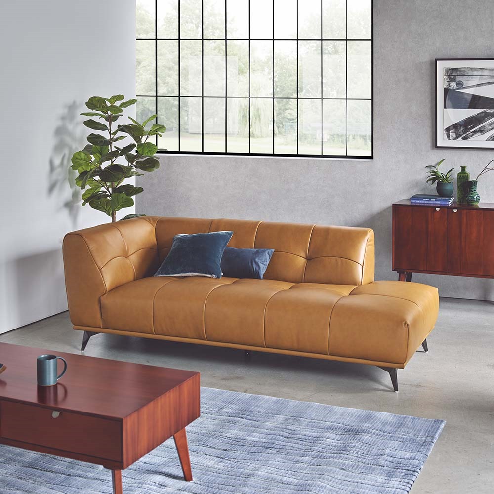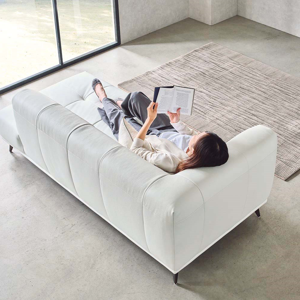 まるで時を重ねたような深みのある色合い。肌に馴染むレザーの質感。抜け感のあるカウチタイプは、トレンドを抑えた新提案。HOUSE STYLING限定の革張りソファ。座って肘が右にあるタイプです。ミッドセンチュリースタイルをご自宅にどこか懐かしさを感じさせるレザー×キルティング加工。片側の肘掛けがないので空間を広く見せる効果も。本革ソファは、時を重ねるほどに味わい深い風合いが増し、上質な空間を演出する特別なソファです。しっとりとした肌触りと座り心地の良さは、日常にくつろぎをもたらし、使うほどに愛着が深まります。シンプルながらも存在感があり、リビングを格調高く彩る本革ソファ。耐久性にも優れ、長く寄り添う一生もののアイテムとしておすすめです。トレンドの片肘ソファ肘が片方しかないので、ソファを置いた時の圧迫感が軽減されます。また、本来は肘の部分を背もたれにして、カウチソファのように足を伸ばしてくつろぐ事もできます。自由度の広がるソファです。主張し過ぎないカラーリングキャメルとホワイトの2色展開。ホワイトはシンプルで部屋馴染みの良い色合い。少しモダンなお部屋にもマッチします。トレンドのキャメルはミッドセンチュリーやヴィンテージモダンな部屋にもマッチ。 HOUSE STYLINGストア限定のソファHOUSE STYLINGではストア限定のコレクションを数多く紹介しています。あなたの暮らしに寄り添うソファを数多く紹介していますので、ぜひ御覧下さい。
