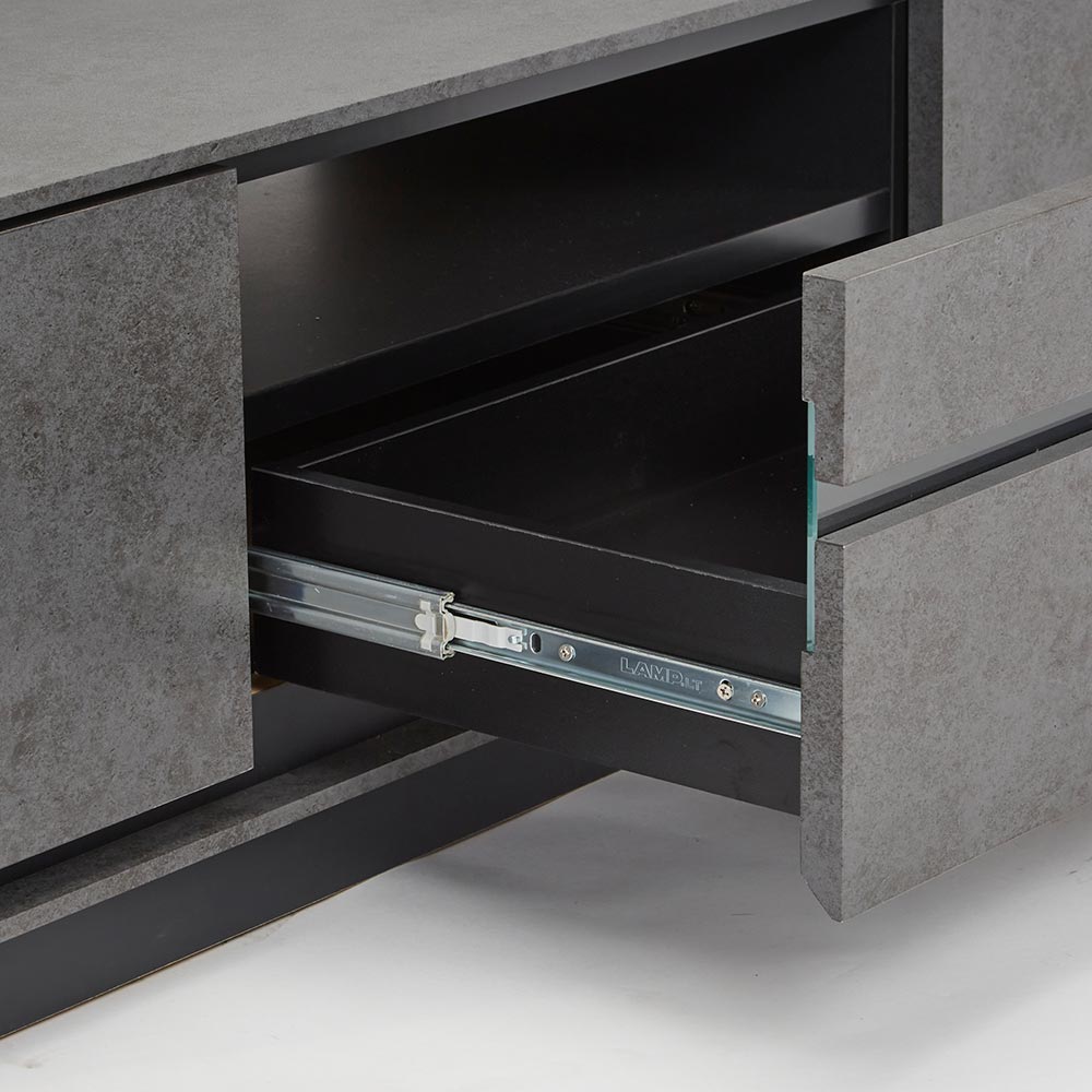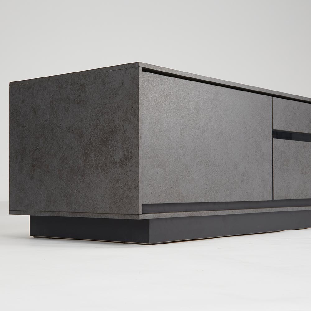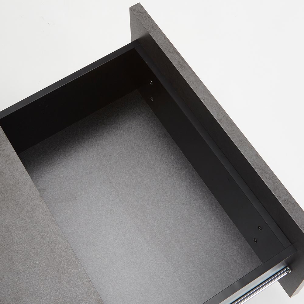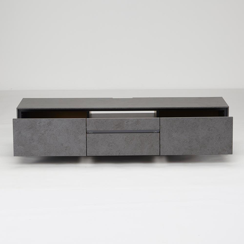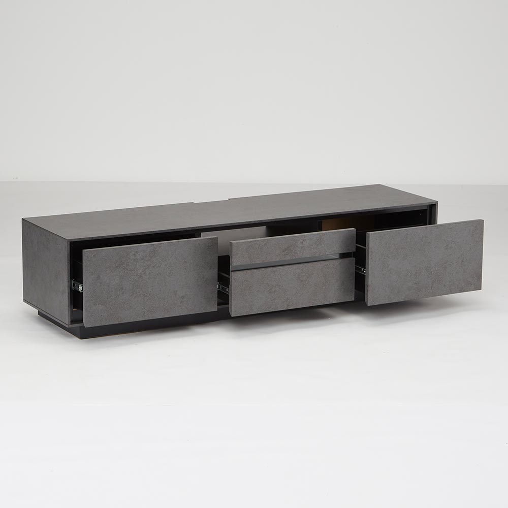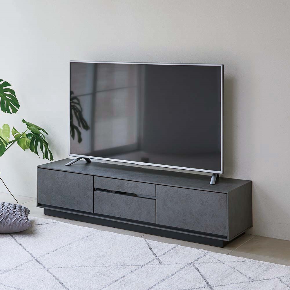 グレーをキーカラーにしたコンテンポラリーな空間に馴染む上質なテレビ台・キャビネットシリーズ。正面から板厚をあえて薄く見せて凛とした印象に仕上げています。コンテンポラリーな空間に映えるグレートーン落ち着きのあるグレーを基調にしたデザインは、洗練されたリビングに自然と溶け込みます。板厚をあえて抑えたフォルムで凛とした印象に仕上げています。ローボード設計により視線を低く抑え、リビングをより広々と感じさせます。美しさと機能性を兼ね備えた収納力・中央の引き出しにはスリット窓を入れ、内部に収納したAV機器のリモコン操作に対応します。・3杯の引き出しでリビング小物の分類収納に対応リビングにはサイズの異なる日用品が多いので、収納は引き出しが便利。全ての引き出しにフルスライドレール付きなので物の出し入れもストレスフリー。箱組仕様なので強度があり、長く安心して使えます。長く愛せる上質なテレビ台堅牢なつくりと美しい質感を大切にしたシリーズは、時間を経ても色褪せない魅力を放ちます。大型テレビも設置出来るゆとりのあるサイズで、我が家がくつろぎのシアタールームに。
