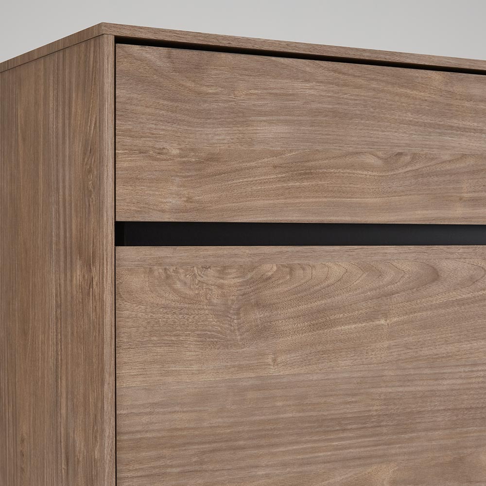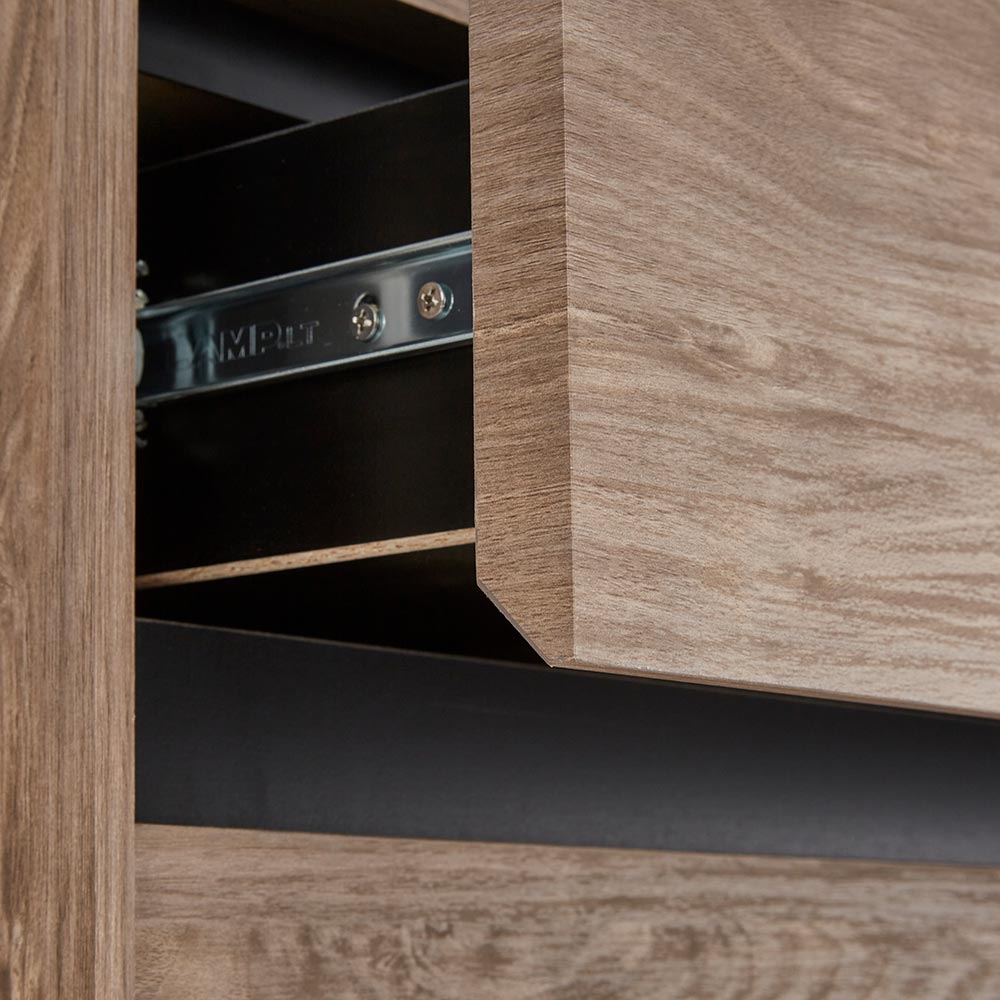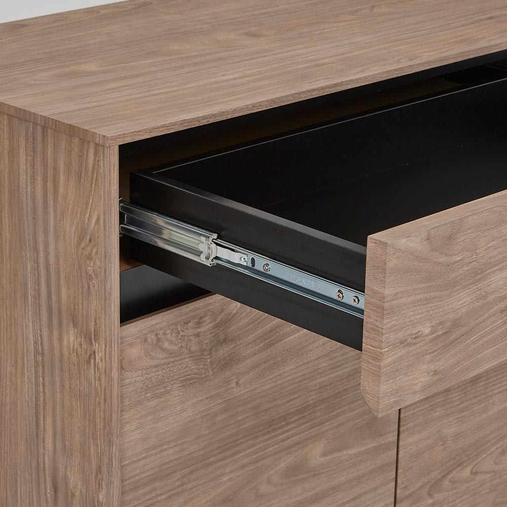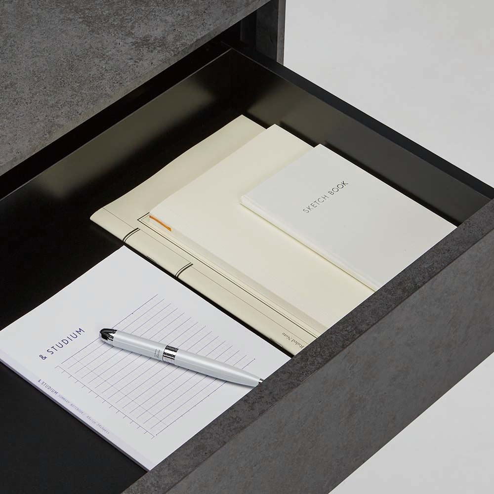 グレーをキーカラーにしたコンテンポラリーな空間に馴染む上質なテレビ台・キャビネットシリーズ。正面から板厚をあえて薄く見せて凛とした印象に仕上げています。コンテンポラリーな空間に映えるグレートーン落ち着きのあるグレーを基調にしたデザインは、洗練されたリビングに自然と溶け込みます。板厚をあえて抑えたフォルムで凛とした印象に仕上げています。美しさと機能性を兼ね備えた収納力・上部の引き出しで細々としたリビング小物の収納に対応リビングにはサイズの異なる日用品が多いので、収納は引き出しが便利。フルスライドレール付きなので物の出し入れもストレスフリー。箱組仕様なので強度があり、長く安心して使えます。・天板後方には配線用のコードスリット付き音響家電やライト等、天板の上に置いてもコードを背面にすっきり逃がせます。・扉内にはコード穴付きWifiルーター等を扉内に収納してもコードを外に逃がして壁のコンセントに繋ぐことが出来ます。長く愛せる上質なキャビネット堅牢なつくりと美しい質感を大切にしたシリーズは、時間を経ても色褪せない魅力を放ちます。