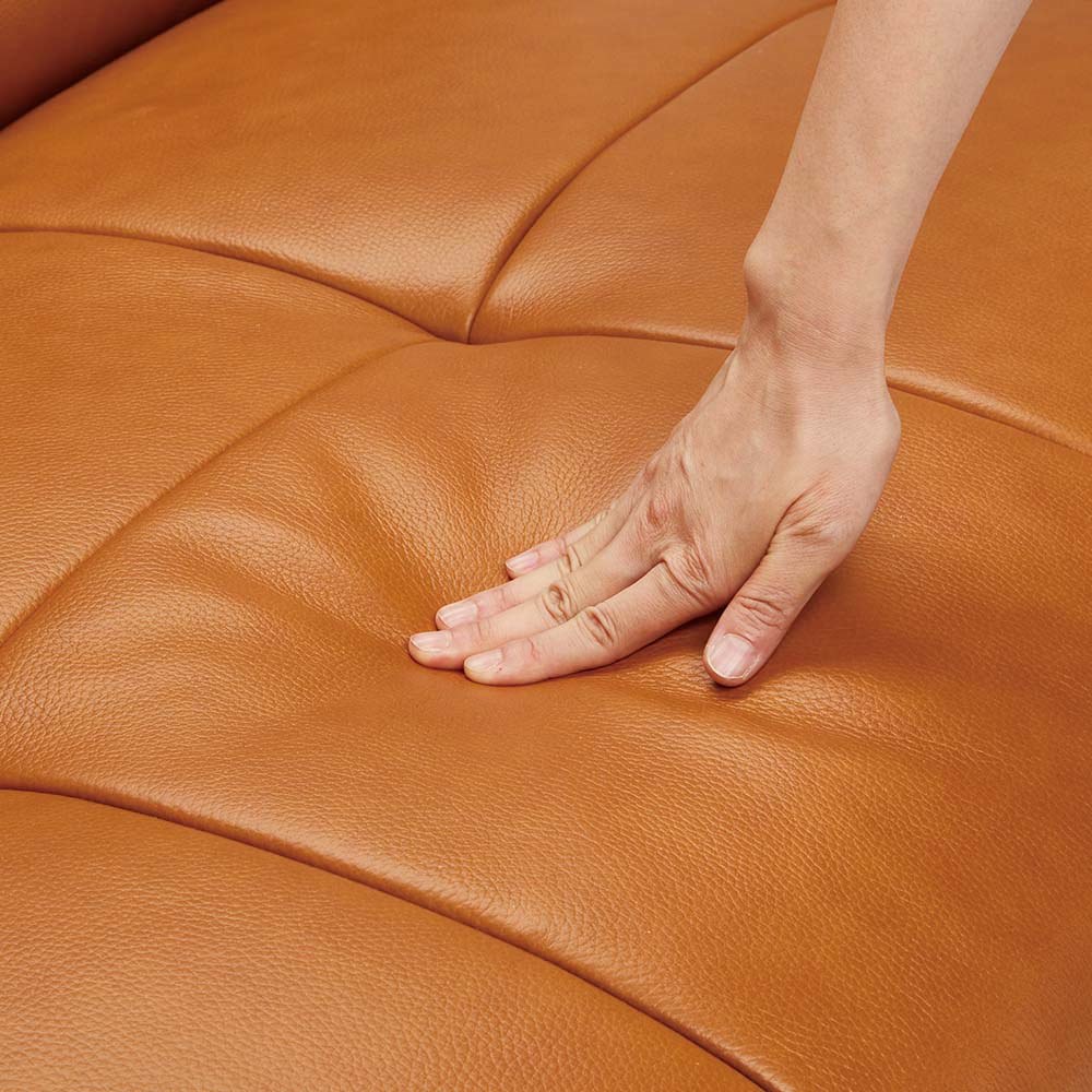 まるで時を重ねたような深みのある色合い。肌に馴染むレザーの質感。シンプルでありながら存在感のある革張りソファがHOUSE STYLINGから新登場。ミッドセンチュリースタイルをご自宅にどこか懐かしさを感じさせるレザー×キルティング加工。片側の肘掛けがないので空間を広く見せる効果も。本革ソファは、時を重ねるほどに味わい深い風合いが増し、上質な空間を演出する特別なソファです。しっとりとした肌触りと座り心地の良さは、日常にくつろぎをもたらし、使うほどに愛着が深まります。シンプルながらも存在感があり、リビングを格調高く彩る本革ソファ。耐久性にも優れ、長く寄り添う一生もののアイテムとしておすすめです。主張し過ぎないカラーリングキャメルとホワイトの2色展開。ホワイトはシンプルで部屋馴染みの良い色合い。少しモダンなお部屋にもマッチします。トレンドのキャメルはミッドセンチュリーやヴィンテージモダンな部屋にもマッチ。 HOUSE STYLINGストア限定のソファHOUSE STYLINGではストア限定のコレクションを数多く紹介しています。あなたの暮らしに寄り添うソファを数多く紹介していますので、ぜひ御覧下さい。