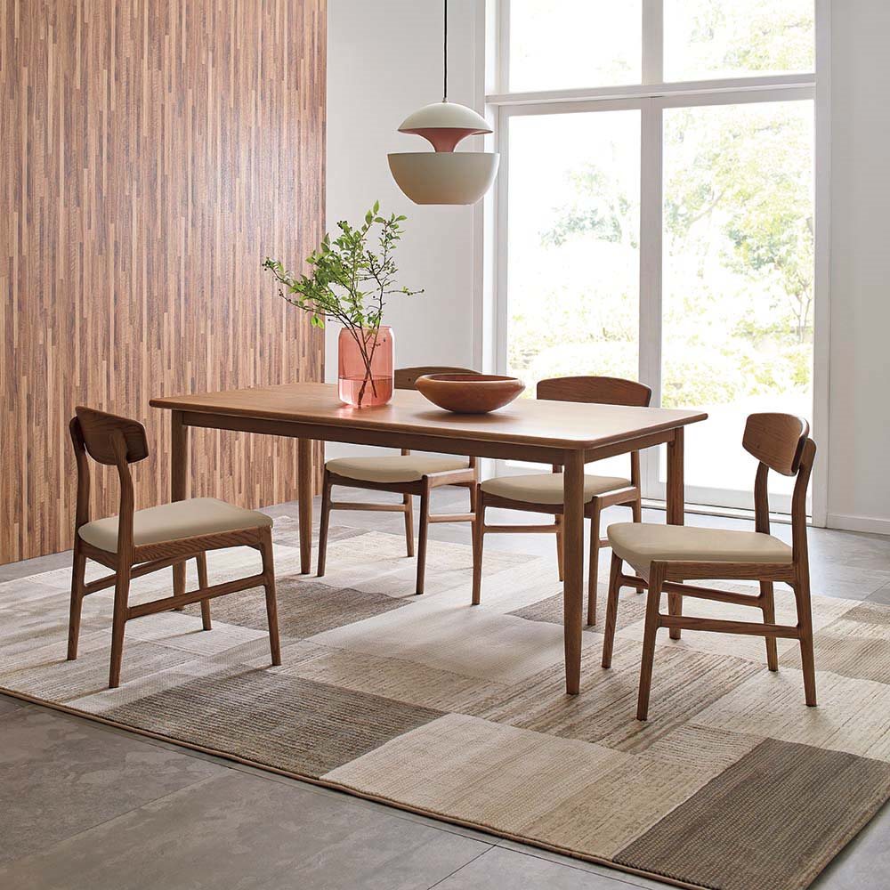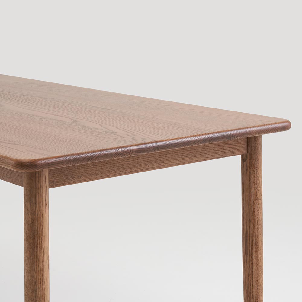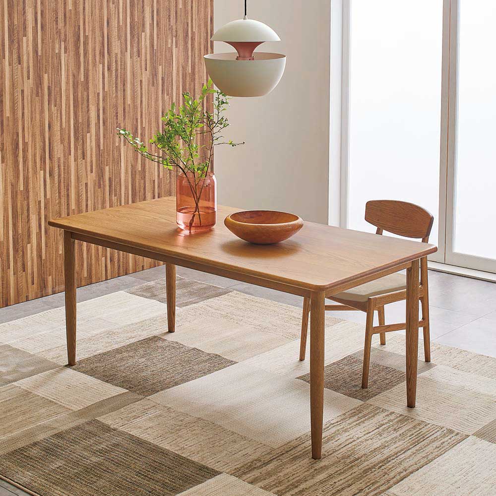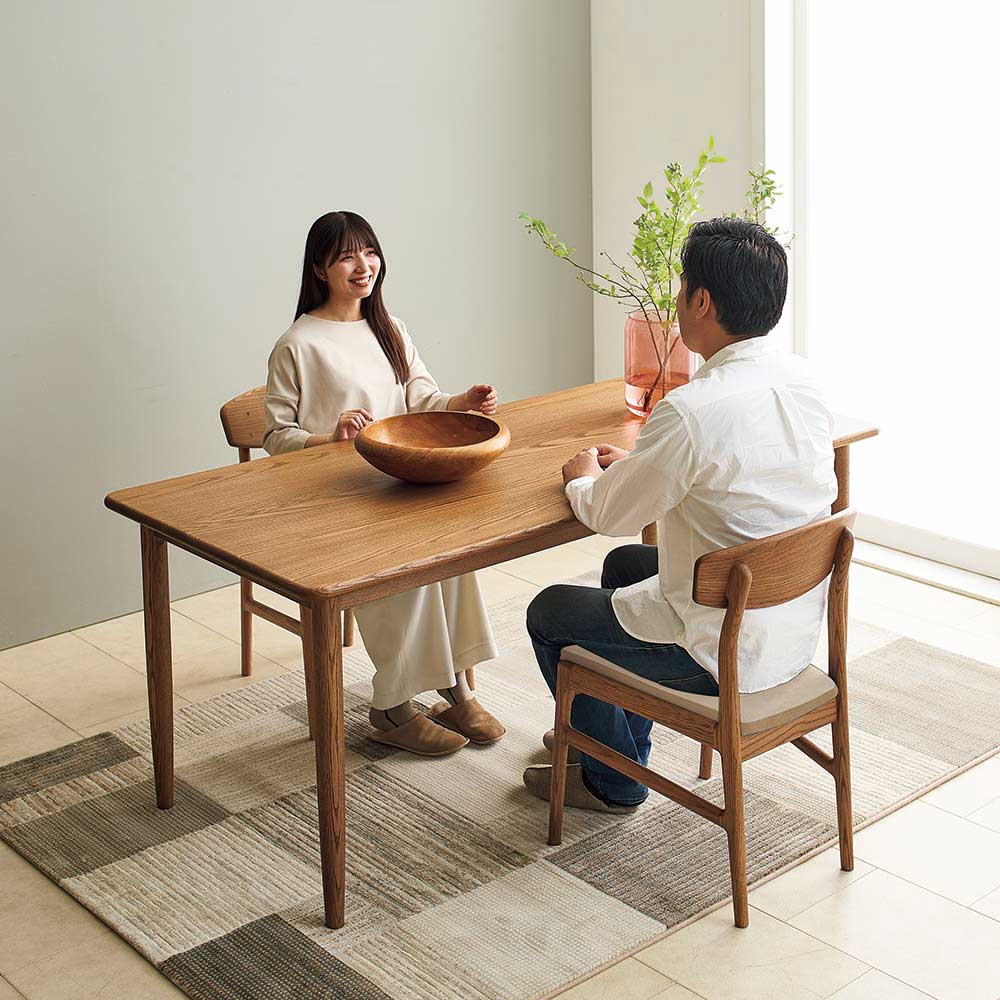 ナチュラルな表情のオーク天然木で心やすらぐ空間に。天板と脚に丸みをもたせたやさしいデザイン。北欧スタイルのコーディネートにおすすめです。北欧の暮らしを、くつろぐためのダイニングシリーズ引き続き人気の北欧インテリア。家具やインテリアなどの物だけでなく、暮らし方も含めて北欧スタイルが注目されています。ゆったりリラックスした食事やお茶の時間を楽しむ北欧の習慣を取り入れやすくするダイニングシリーズをご紹介します。無垢材ならではの優しいカーブとオーク天然木の木目が魅力手に触れるところに「丸み」をつけたテーブルは、優しい手触りで長い時間を共にできそう。天然木だから生み出せるやさしいカーブは、ルックスだけでなく、使う人のことを考えたデザインです。使いやすさに配慮したウレタン塗装ウレタン塗装を施し水や汚れに配慮しています。また紫外線や摩耗に耐性があるので扱いやすいダイニングテーブルです。同シリーズのチェアもご用意同シリーズのチェアとあわせてダイニングセットとしてお使いいただけます。※チェアは関連商品からご確認ください。