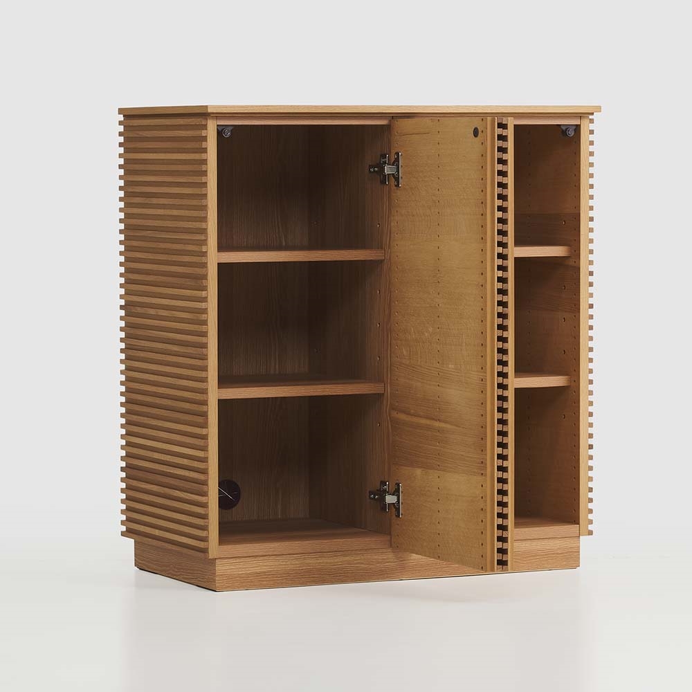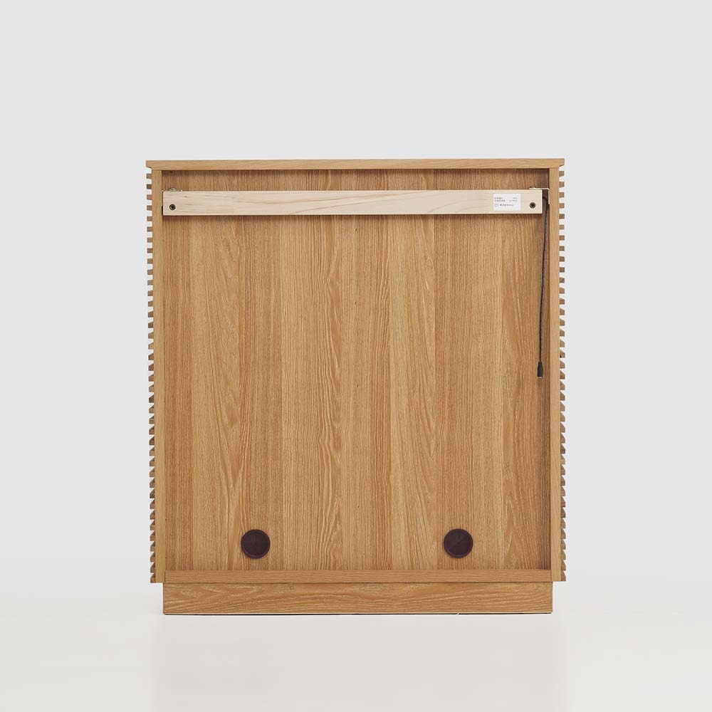 細やかな横格子を、目を合わせながら美しく側面まで。「精巧」を物語る職人技がリビングで存在感を魅せます。丁寧に組み上げた横格子デザイン。幅わずか1cmに切り出した天然木を、1本1本丹念に磨いて塗装。サイドまで横目が揃う端正な仕上げに。ふわりと灯るLEDが間接照明に。天板背面にLEDライトを搭載。やわらかな光が壁面に広がり、リビング空間を美しく演出します。日本品質に管理された工場で丁寧に作られています100%日本向け、日本人が管理する工場で1点1点丁寧に仕上げています。