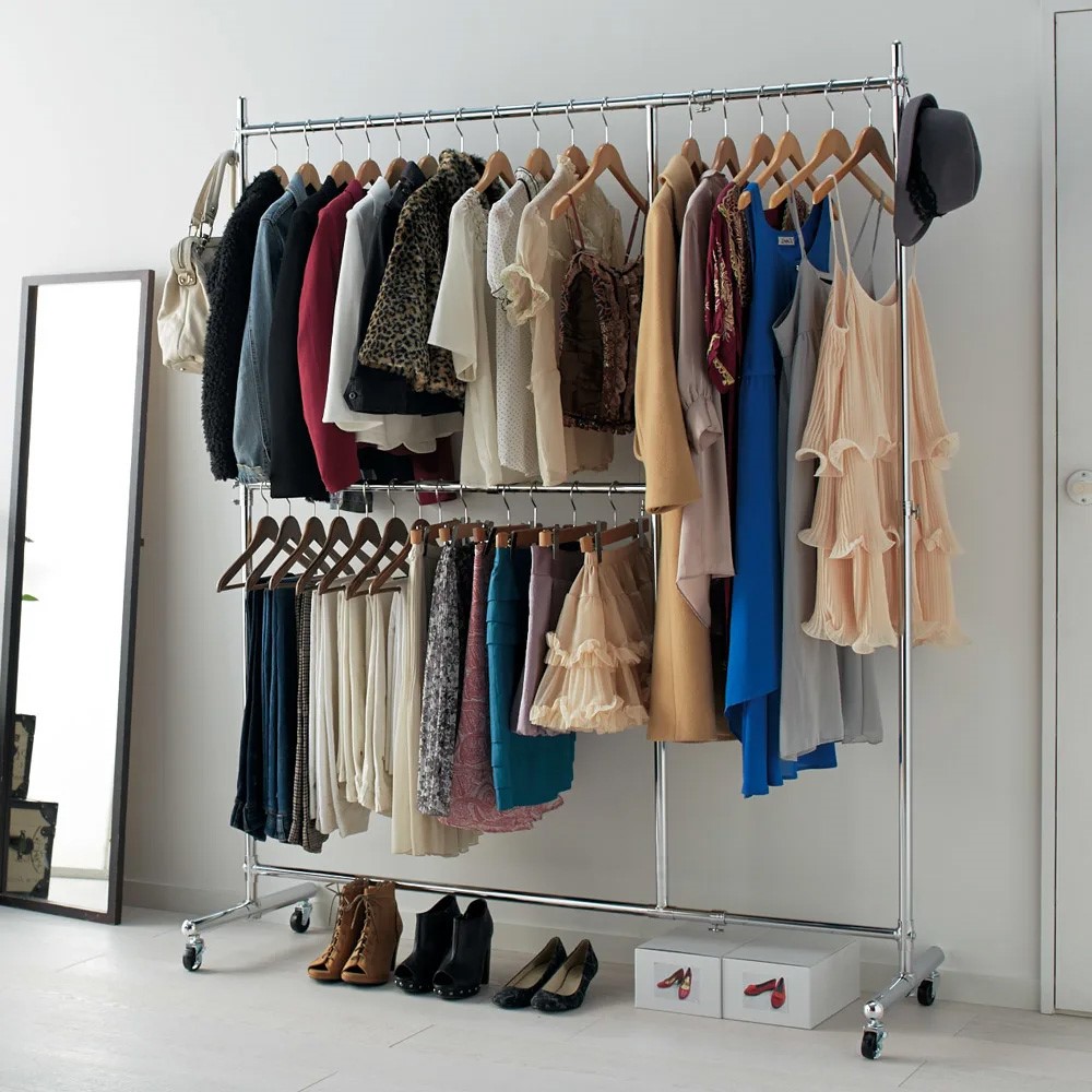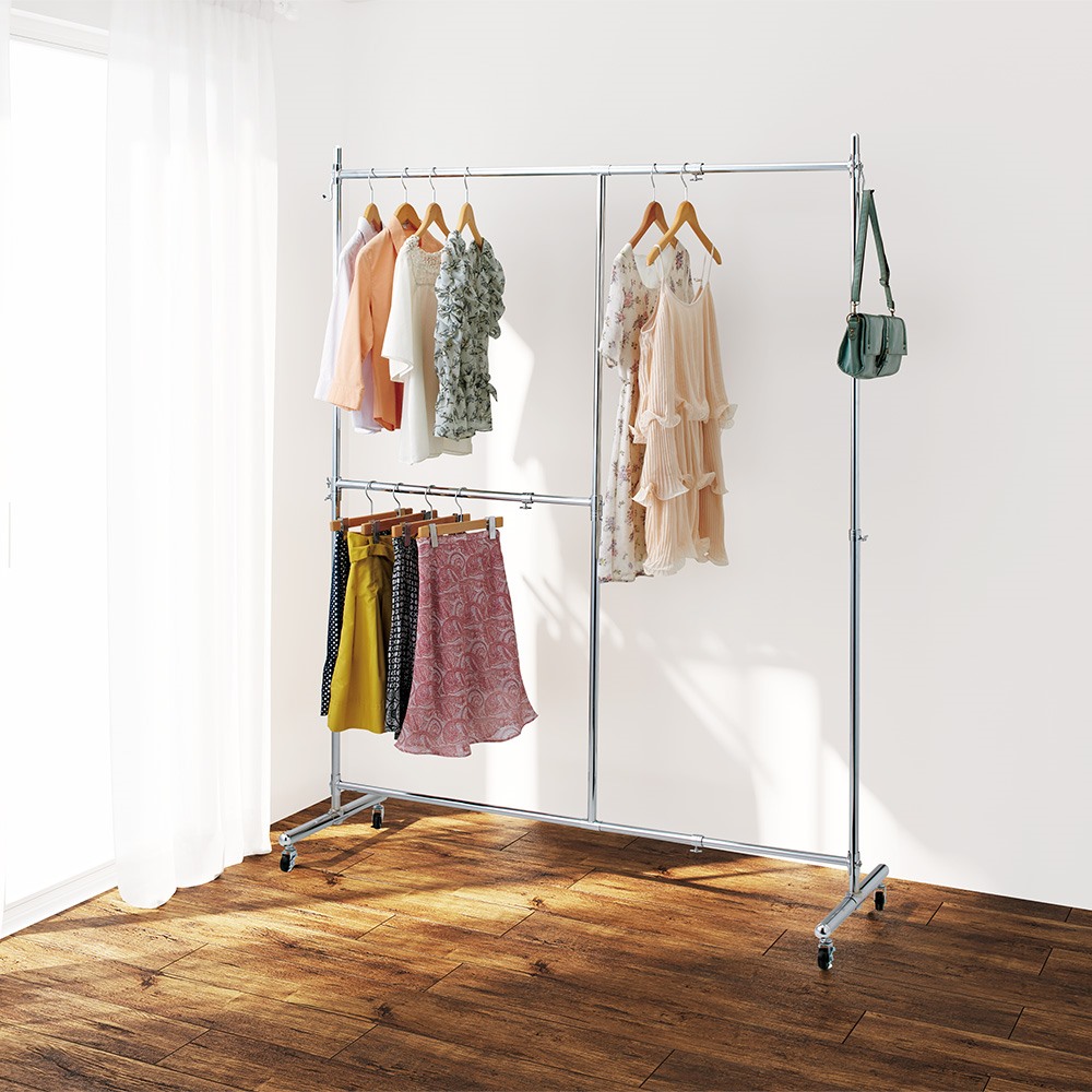 大人気の頑丈ハンガーラックの上下2段タイプです。ジャケットやスカートなどの衣類を分けて大量収納することができます。 ※写真はお届けする商品です。