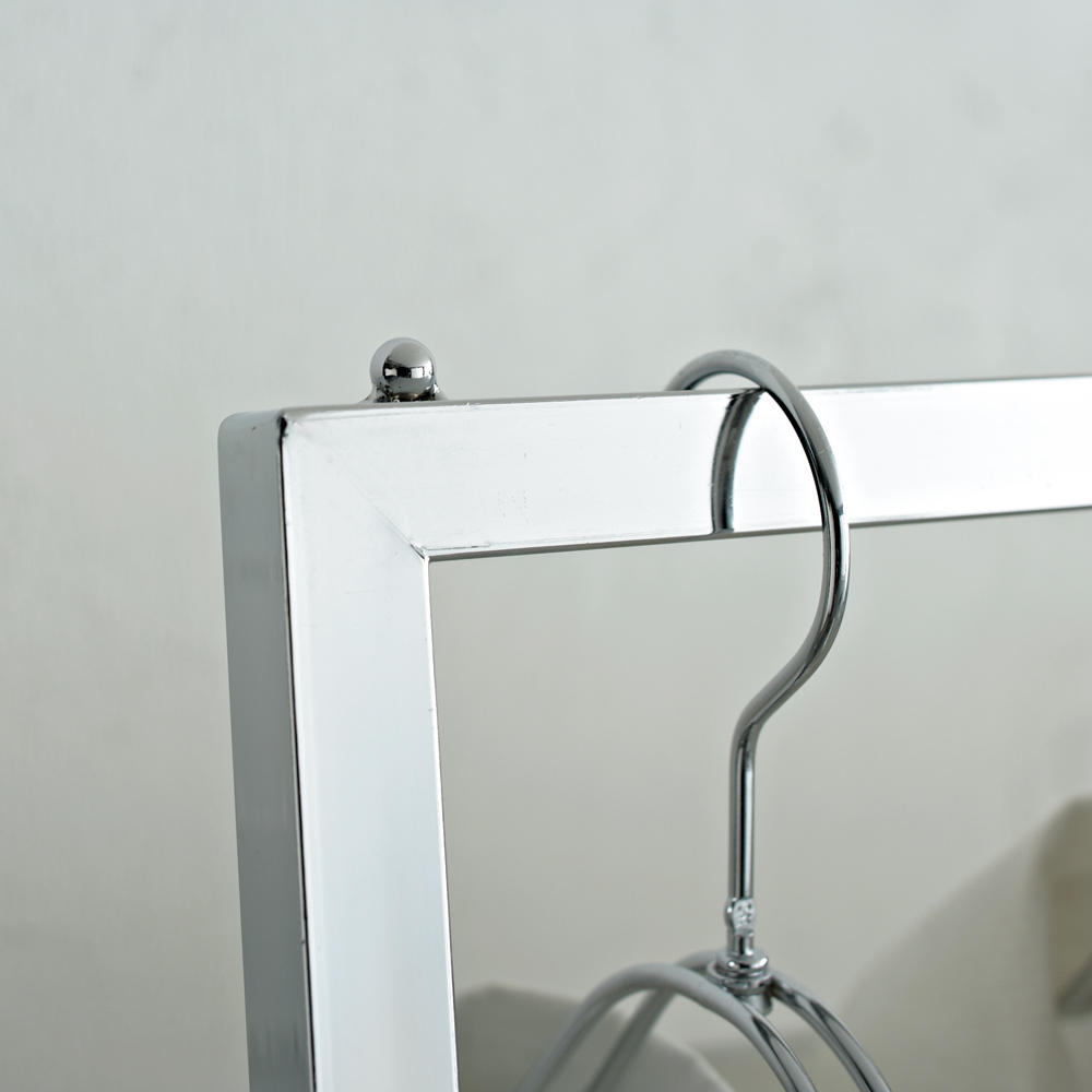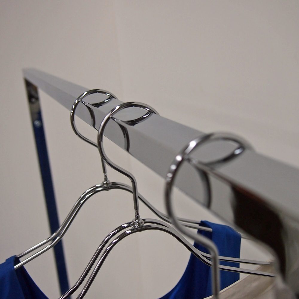 強度のあるスチール角パイプをフレームに使用しています。こぼれ止め付きなのでハンガーが落ちにくい仕様となっています。