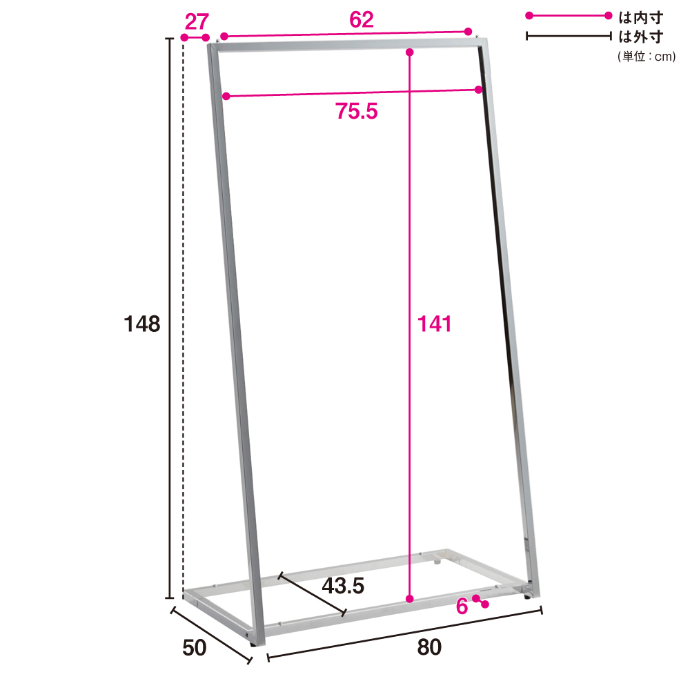 内寸図(cm)ハンガーバー下の高さが140cmあるのでワンピースやロングコートもゆったり掛けられます。
