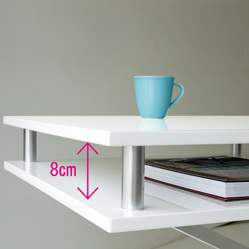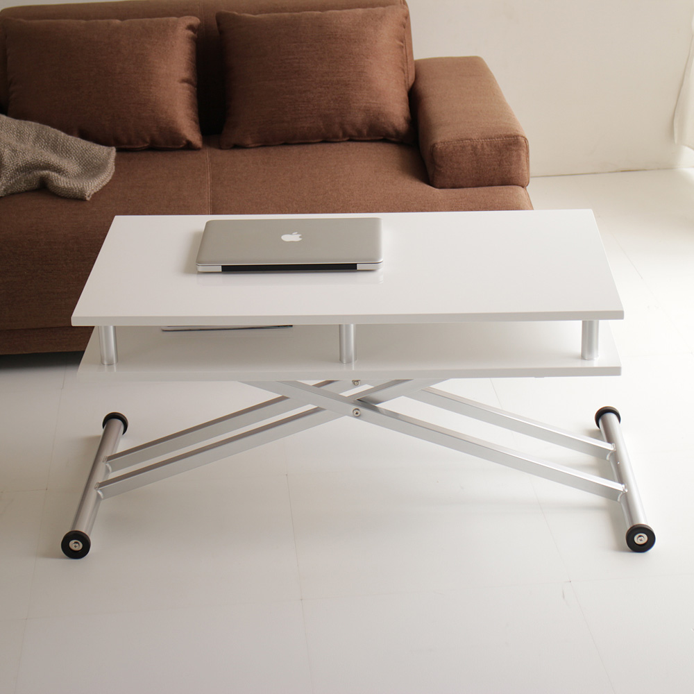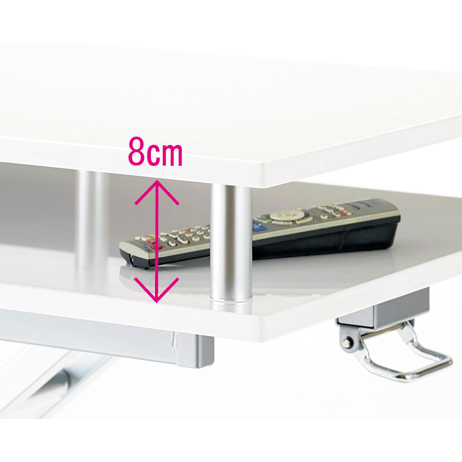 サッとしまえる棚付きリフトテーブルで天板すっきり!(ア)ホワイト ※高さ47cm時 ※写真は幅120cmタイプです。