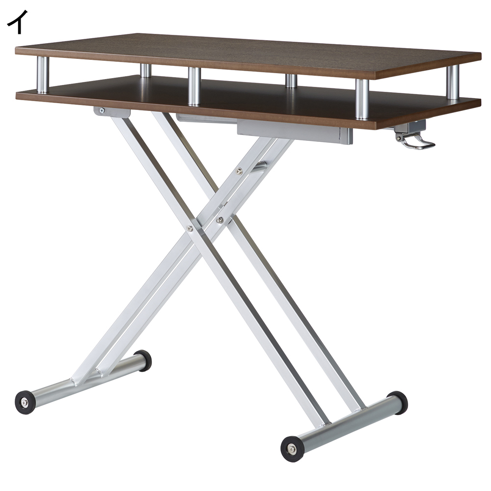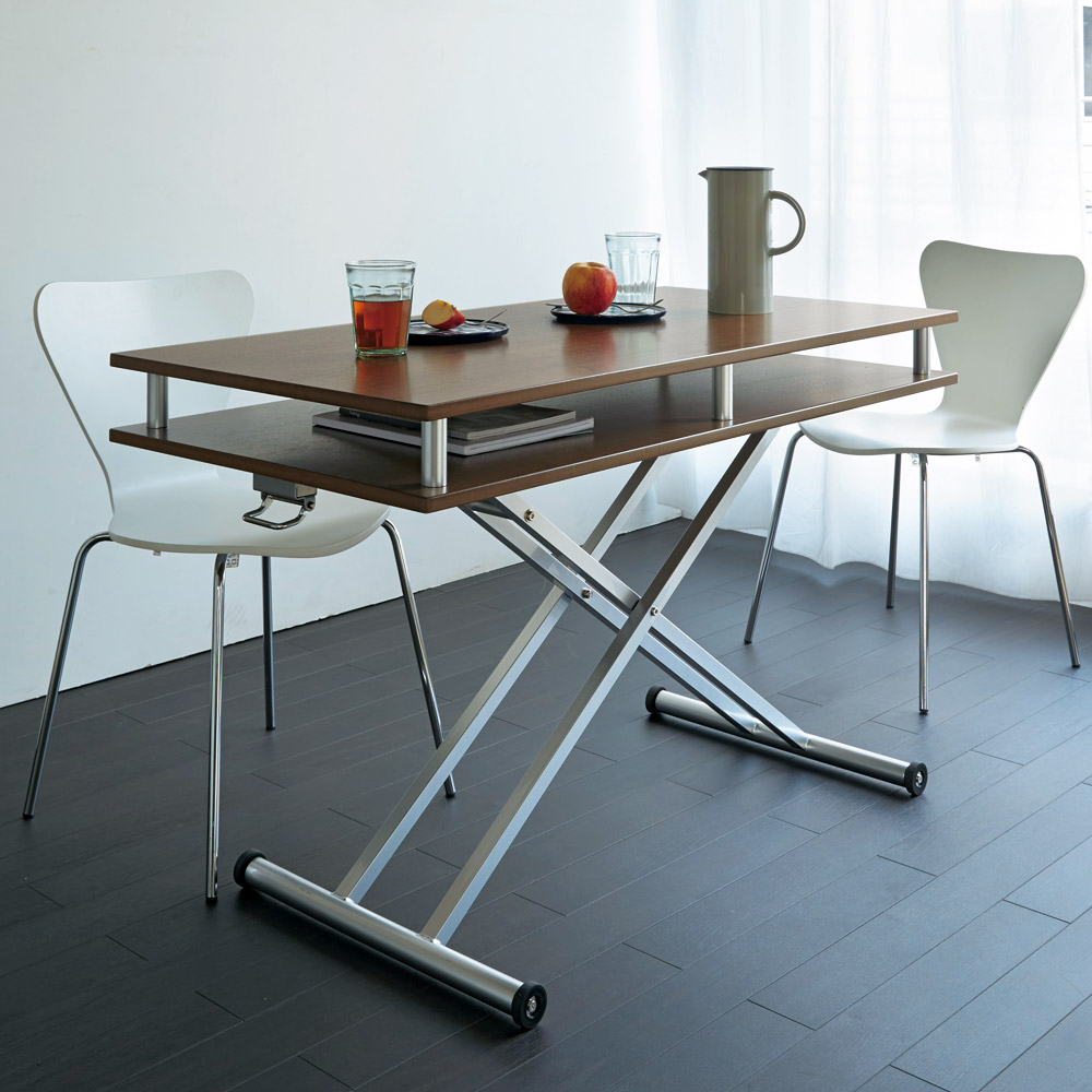 昇降式なので高さをあげればダイニングテーブルとしても。 (イ)ウォルナット ※高さ77cm時 ※チェアは商品に含まれません。