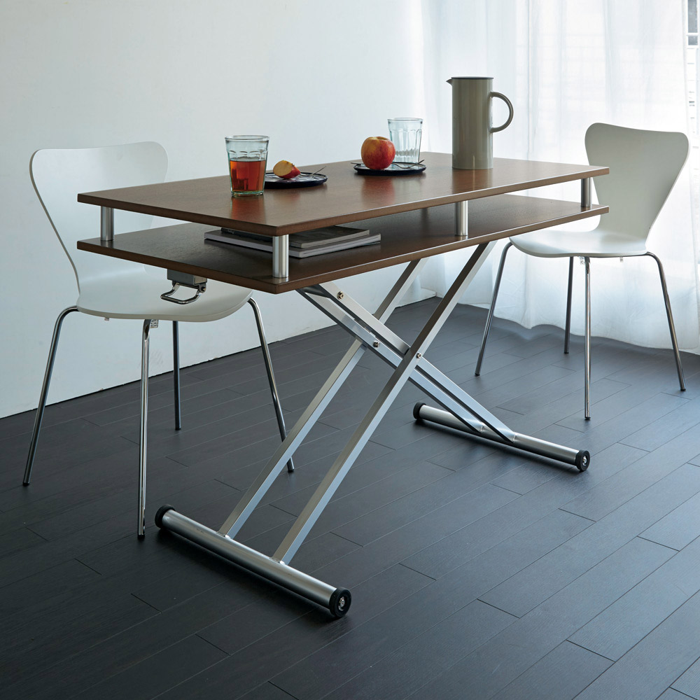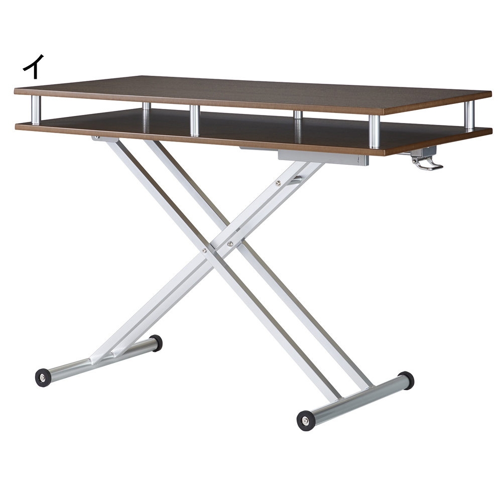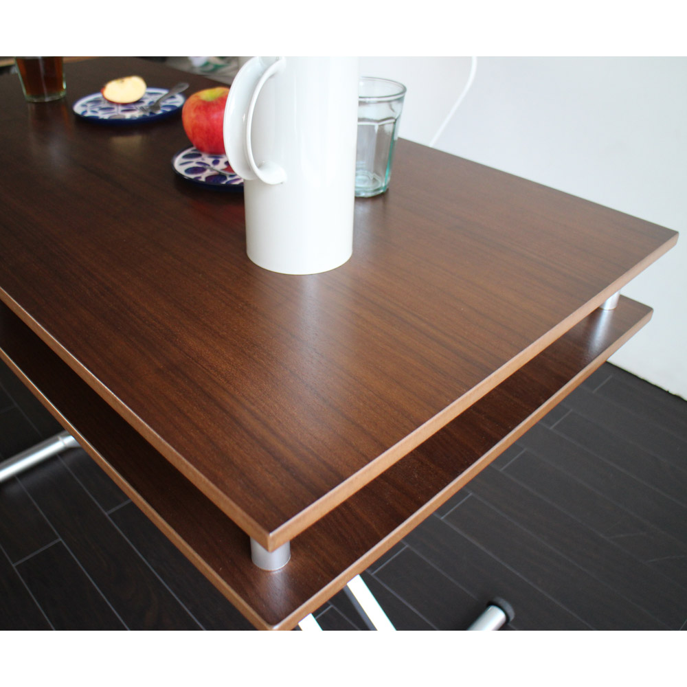 (イ)ウォルナット 昇降式なので高さをあげればダイニングテーブルとしても。 ※写真は幅102cmタイプです。 ※高さ77cm時 ※写真は幅102cmタイプです。