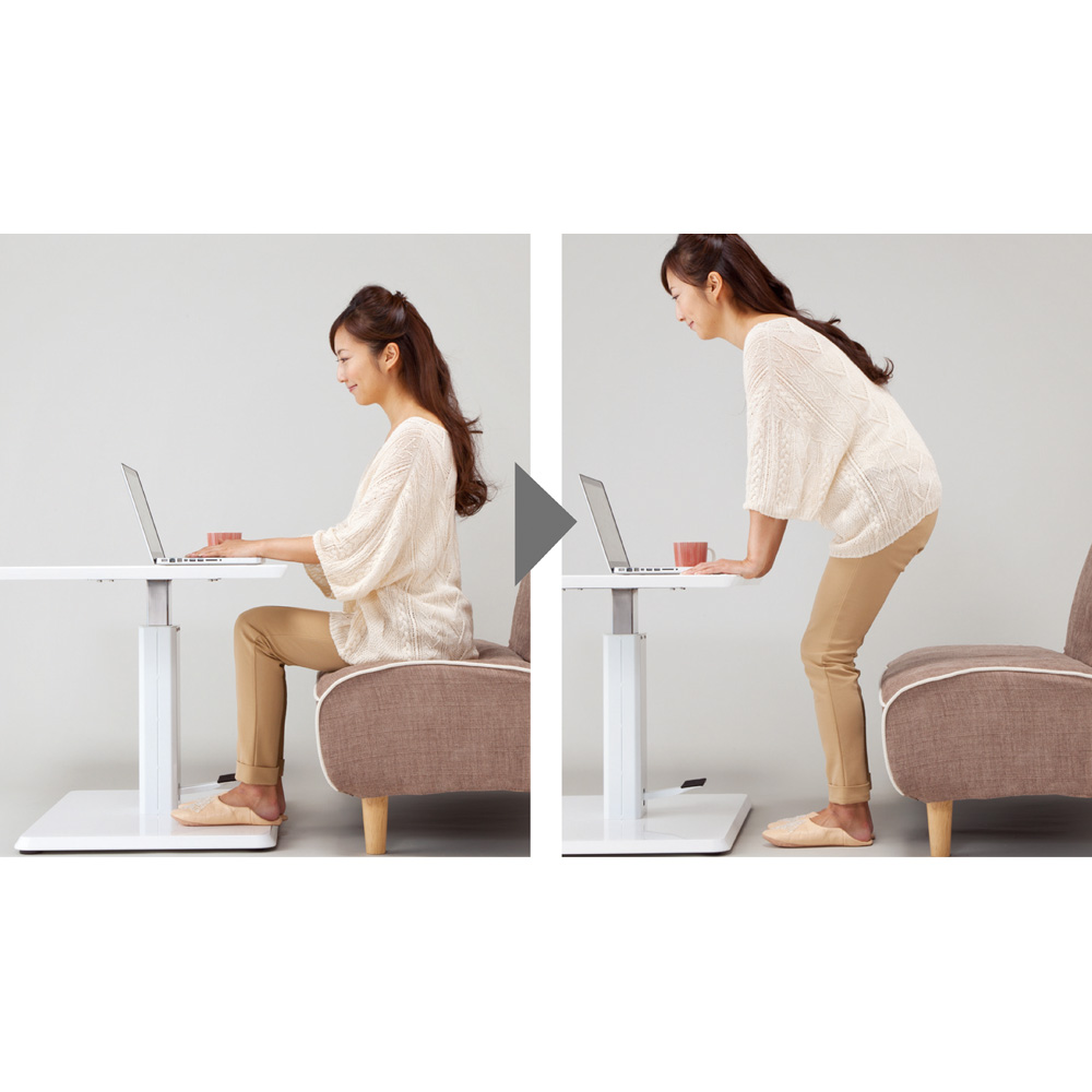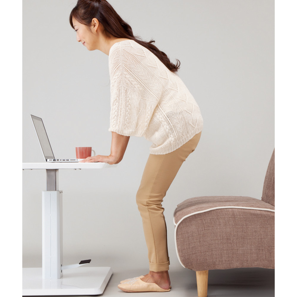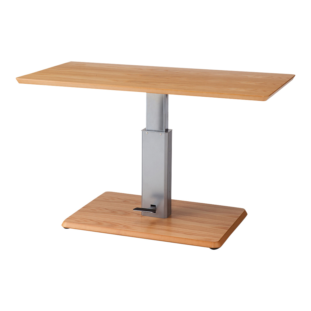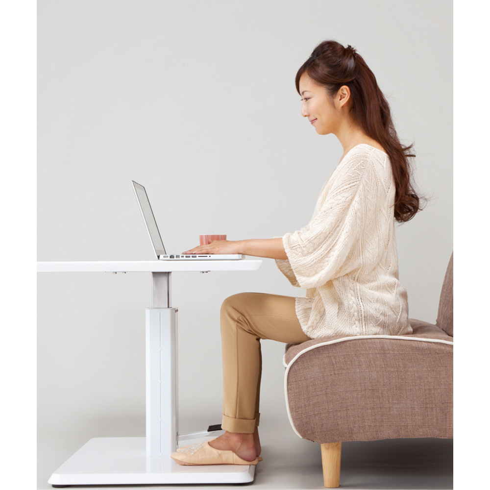 【ポイント】フットペダルを踏み、天板を上げ下げするだけで高さを無段階に調節が可能。