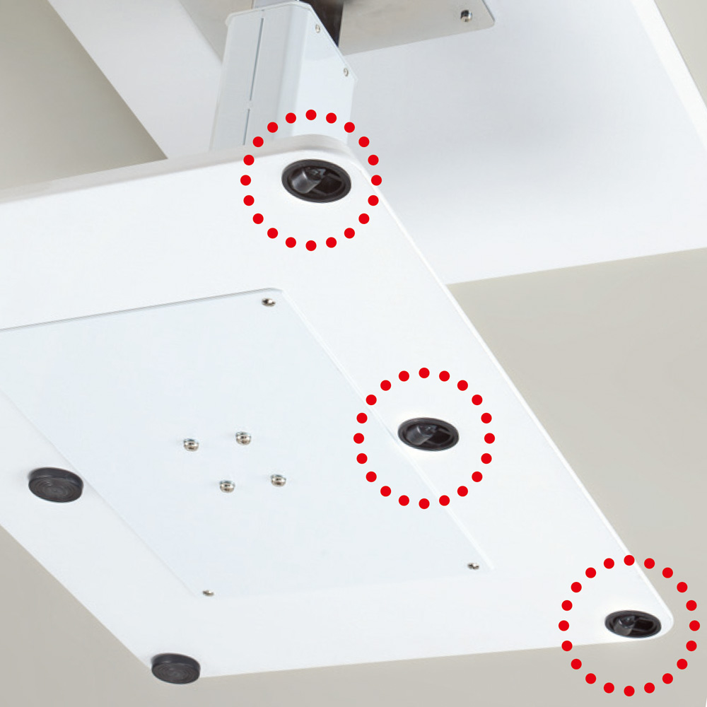 台座の底面に隠しキャスター(3個)が付いています。反対側にはアジャスターが3個付きなので設置時に簡単にズレ動きはしません。