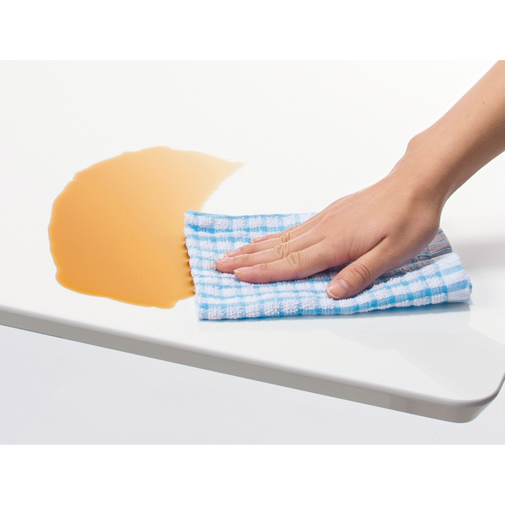 (ア)ホワイト 天板下、角部には少し丸くなっている優しい仕上げです。