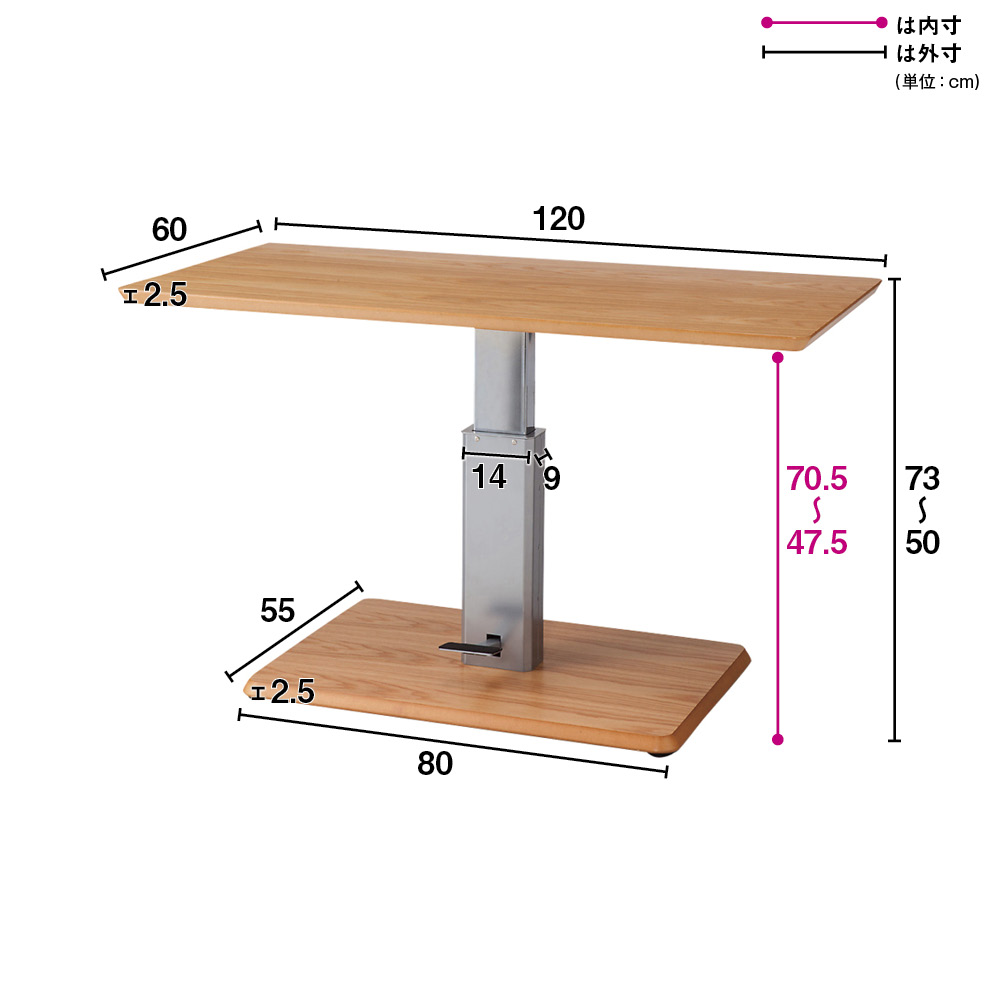 様々なスペースに設置がしやすい奥行60cmのコンパクトな昇降式テーブル。天板高さ50〜73cmまで高さを調整できるので、リビングテーブル・ダイニングテーブルとしてなど幅広い用途でお使いいただけます。隠しキャスター付きなのでちょっとした移動がしやすい優秀なリフトテーブルです。テレワーク・おうち時間を快適に過ごせてデザインも機能もばっちりです!!便利な機能満載!使いやすい昇降テーブル便利な機能がたっぷりの昇降式テーブルは使いやすさが魅力です。リビングやダイニングなど様々な用途に対応します。コンパクトな奥行60cmで、スペースを取らずに設置が可能です。用途に合った高さ調整で快適ワークスペース天板の高さを50〜73cmの間で無段階に調節が可能。用途に合わせて最適な高さに設定できるため、どんなシーンでも快適な作業環境を提供します。フットペダルで簡単高さ調節天板の高さ調整は、フットペダルを踏んで手を添えるだけで簡単にできます。操作がシンプルだからこそ、毎日の使用が快適に。調節の手軽さが魅力です。スムーズな移動と安定設置を実現テーブルのベースにはキャスターが3個付いており、移動が簡単。設置時にズレることなく安定させるためのアジャスターも完備しています。どこでも快適に使える仕様です。インテリア性と機能性を両立この昇降テーブルはデザイン性が高く、インテリアとしても馴染みます。光沢の美しいホワイト色とナチュラルなオーク材の木目を持つ2タイプから選択可能。お部屋の美観を損なわず、洗練された空間を演出します。こだわりのデザインでワンランク上の空間をホワイトのポリエステル化粧板は光沢を放ち、インテリアに優雅さをプラス。木目が美しく高級感のあるオーク天然木化粧板を使用したナチュラルカラーの天板は、デザイン性も抜群です。脚部ベースは角を丸くした仕様で、安全性にも配慮しています。手軽にお手入れできる機能性汚れも簡単に拭き取れてお手入れが非常に簡単です。両色ともに汚れに強い素材を使用しており、食事用のダイニングテーブルや学習机としても最適です。