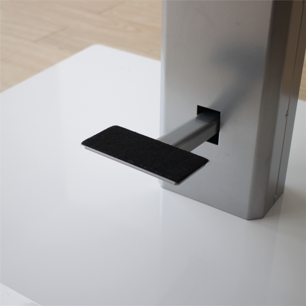 フットペダル表面はフェルト付き。ペダルを踏んで天板の昇降の操作もスムーズ。