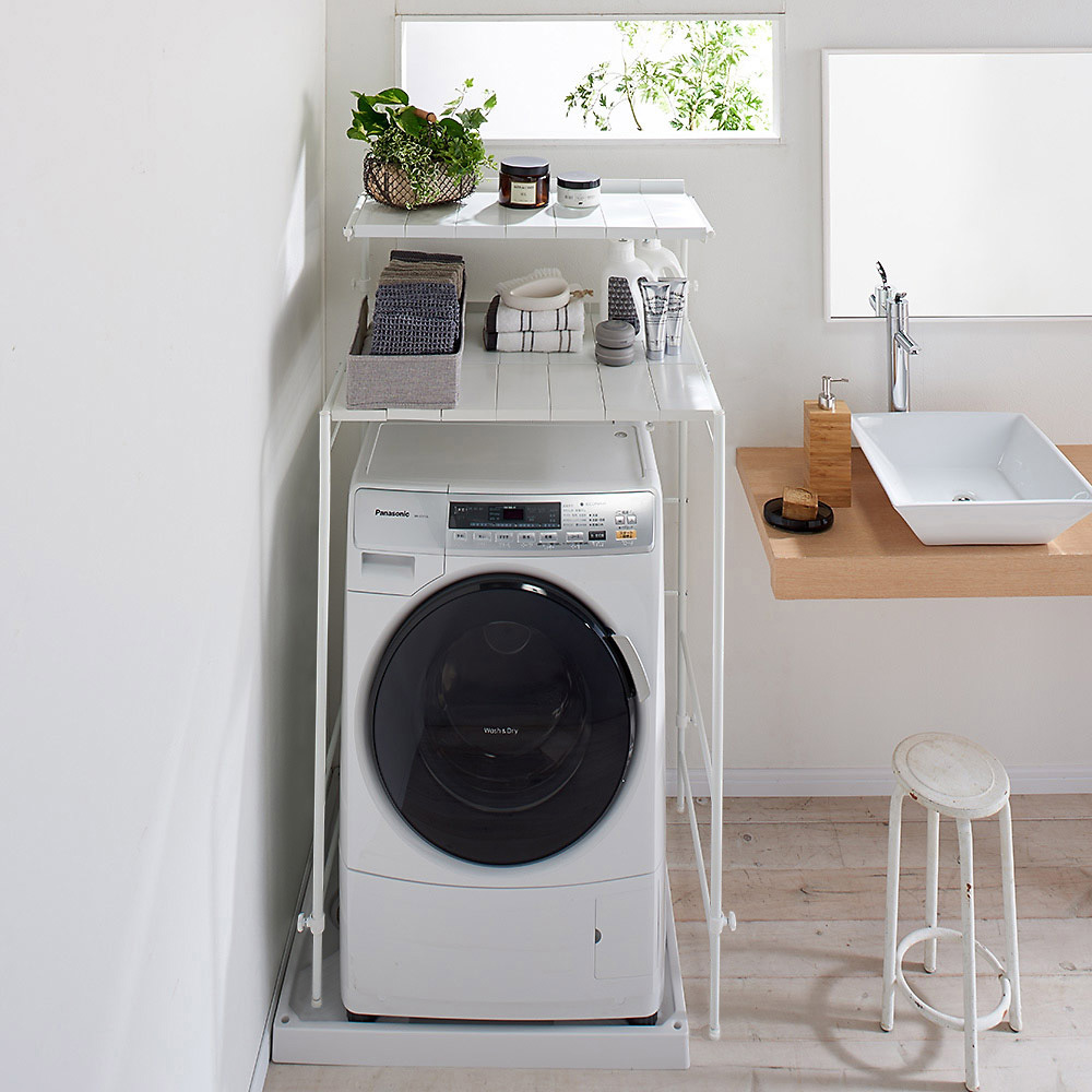 32cmまでの防水パンの段差をまたいで設置できる収納力たっぷりのランドリーラックです。