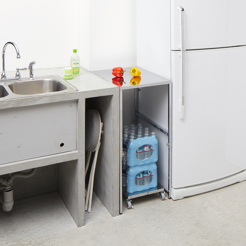 シンク脇や台所のすき間に便利な作業台をプラス。幅&高さが伸縮可能でスペースにぴったり。清潔さが続くステンレス製で、調理のしやすさが格段にアップ!幅30〜45cm 奥行60cmタイプ幅と高さが調節可能!キッチンのすき間に便利な作業台シンク脇などキッチンの空きスペースが便利な作業台に。高さと幅が伸縮するので、ご自宅のキッチンのサイズにぴったり合わせて調整できます。清潔さが続くステンレス製だから、調理後の片付けもラク。幅30〜45cmタイプキッチンのスペースに合わせ、幅は30〜45cmの間で自由に調節可能です。奥行は30cm・45cm・60cmからお選びください。幅46〜75cmタイプ、幅76〜120cmタイプもございます。左:幅調節部、右:高さ調節部幅・高さを調節してピッタリ設置幅は対応範囲内で無段階に調節できます。天板の高さは5cm間隔で6段階(高さ76〜101cm)に調節できます。ゴミ箱上のスペースを活用作業台下のスペースは、ダストボックスの指定席に。飲料・食品ストックの上に場所をとりがちな飲料のストックもすっぽり。お米などのストック場所としても有効活用できます。キッチンのサブテーブルに作業台の前に椅子を設置すれば、レシピの確認や下ごしらえも座りながら楽にできます。清潔さが続くステンレス天板天板は汚れに強く、サビにくく臭いもつきにくいステンレス製。調理後の片付けも汚れをサッと拭くだけと楽ちんです。幅45cm高さ76cmに設定幅30〜45cm 奥行30cmタイプ薄型なので通路やドア横に設置しても邪魔になりません。幅45cm高さ86cmに設定幅30〜45cm 奥行45cmタイプキッチンカウンターやシンク横に並べて使用するのにちょうどよいサイズ。幅45cm高さ91cmに設定幅30〜45cm 奥行60cmタイプシンクや冷蔵庫の横に。たっぷりの奥行で毎日の調理もはかどります。お子様がお手伝いしたり、パートナーと一緒に料理する際にも便利なアイテムです。